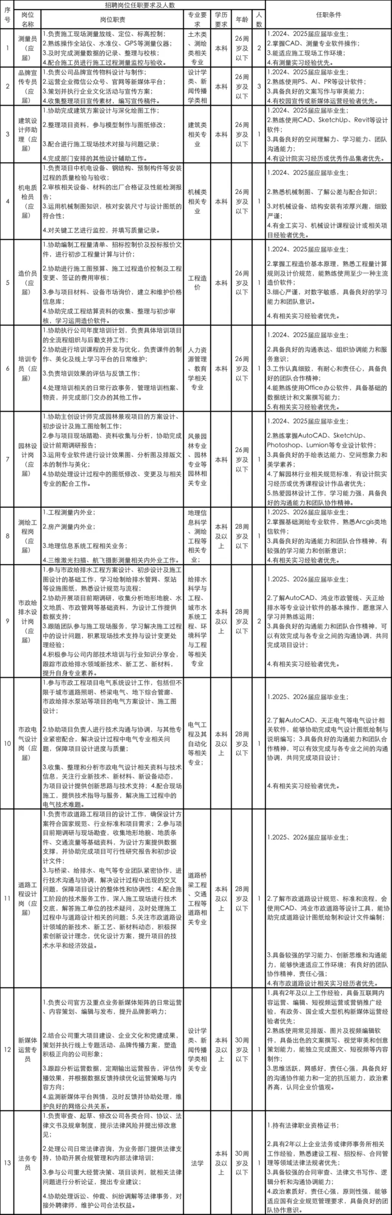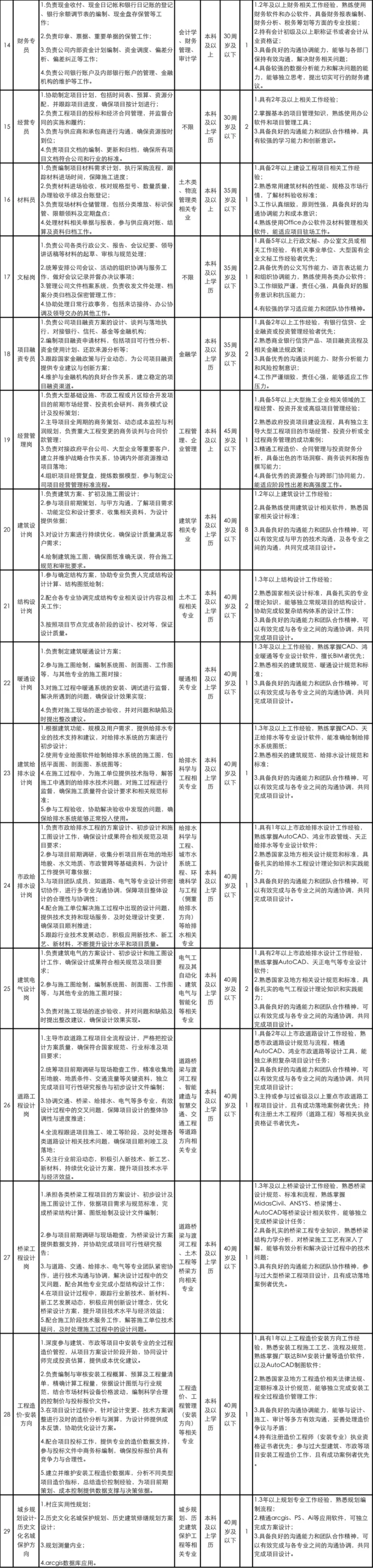 此次郑州建设集团有限公司下属子公司公开招聘工作人员44名。招聘岗位的要求见文末附件《郑州建设集团有限公司下属子公司公开招聘岗位任职条件表》。