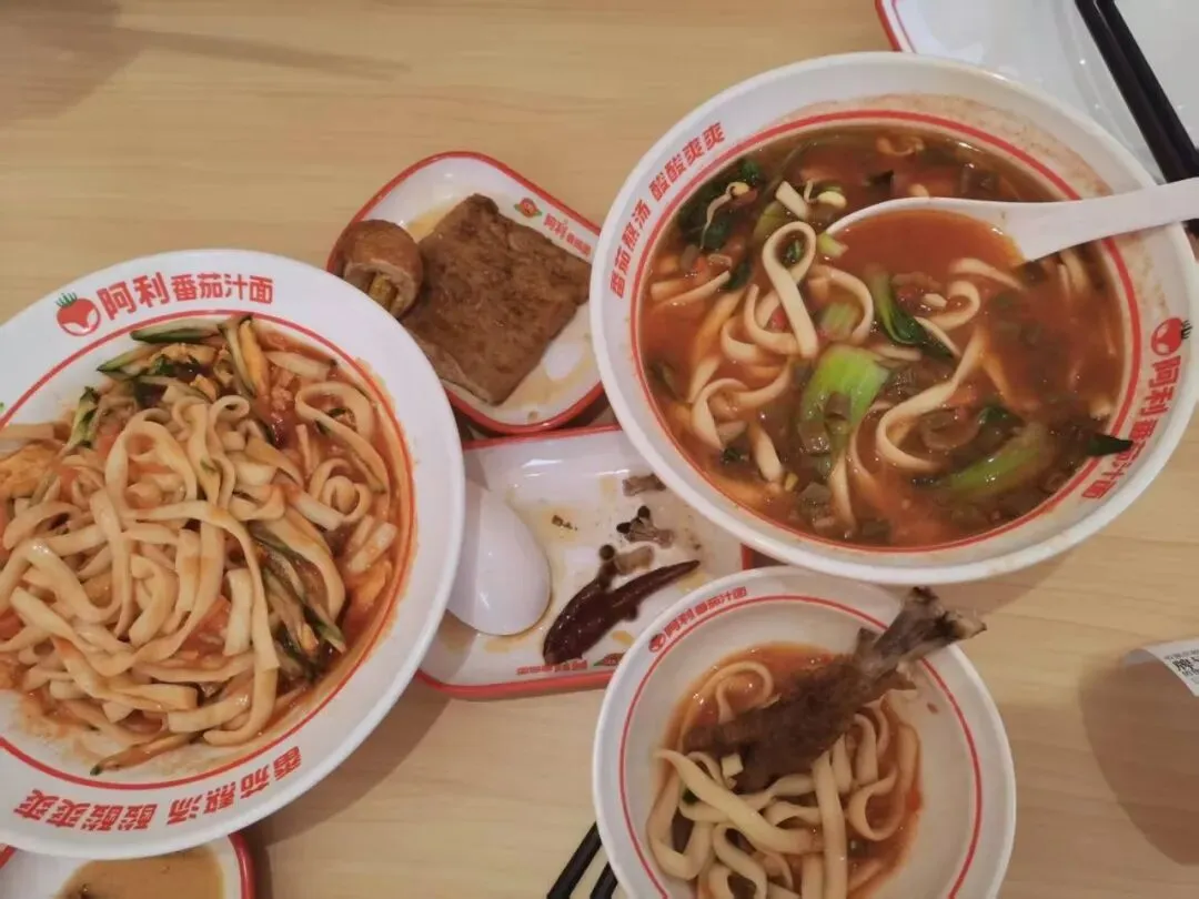 因为过年饭店大多放假,特色菜没吃到,就吃了阿力番茄面,酸辣的好吃,用山西话说,叫吃的很“入法”。