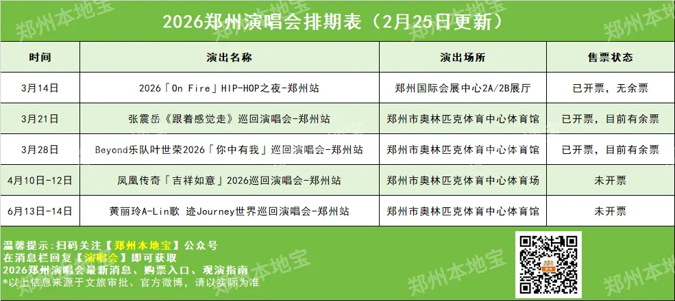 郑州2026年演唱会排期表来喽