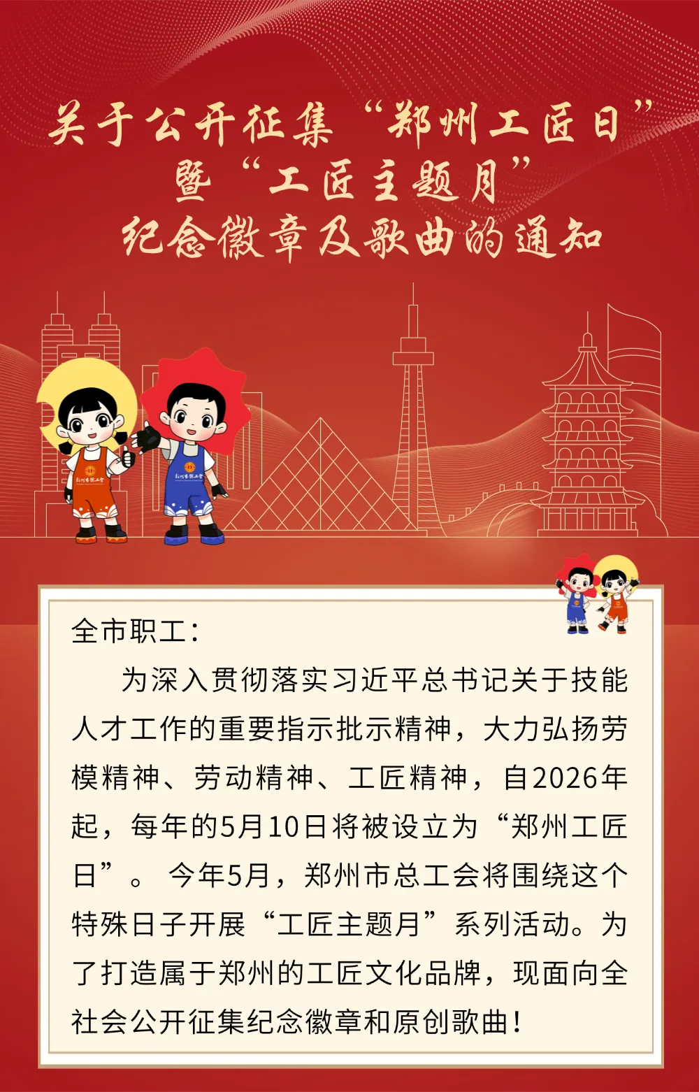 万元奖金+官方认证!“郑州工匠日”纪念徽章和歌曲征集邀您参加!