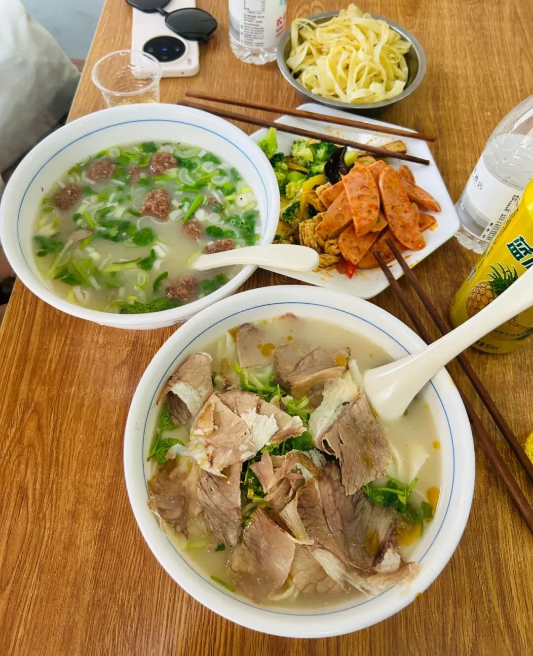 中午尝了河南特色的牛肉汤与烩面,鲜醇的汤汁、筋道的烩面,搭配爽口的小菜,平价又美味,一口下去,满是中原美食的朴实与醇厚。