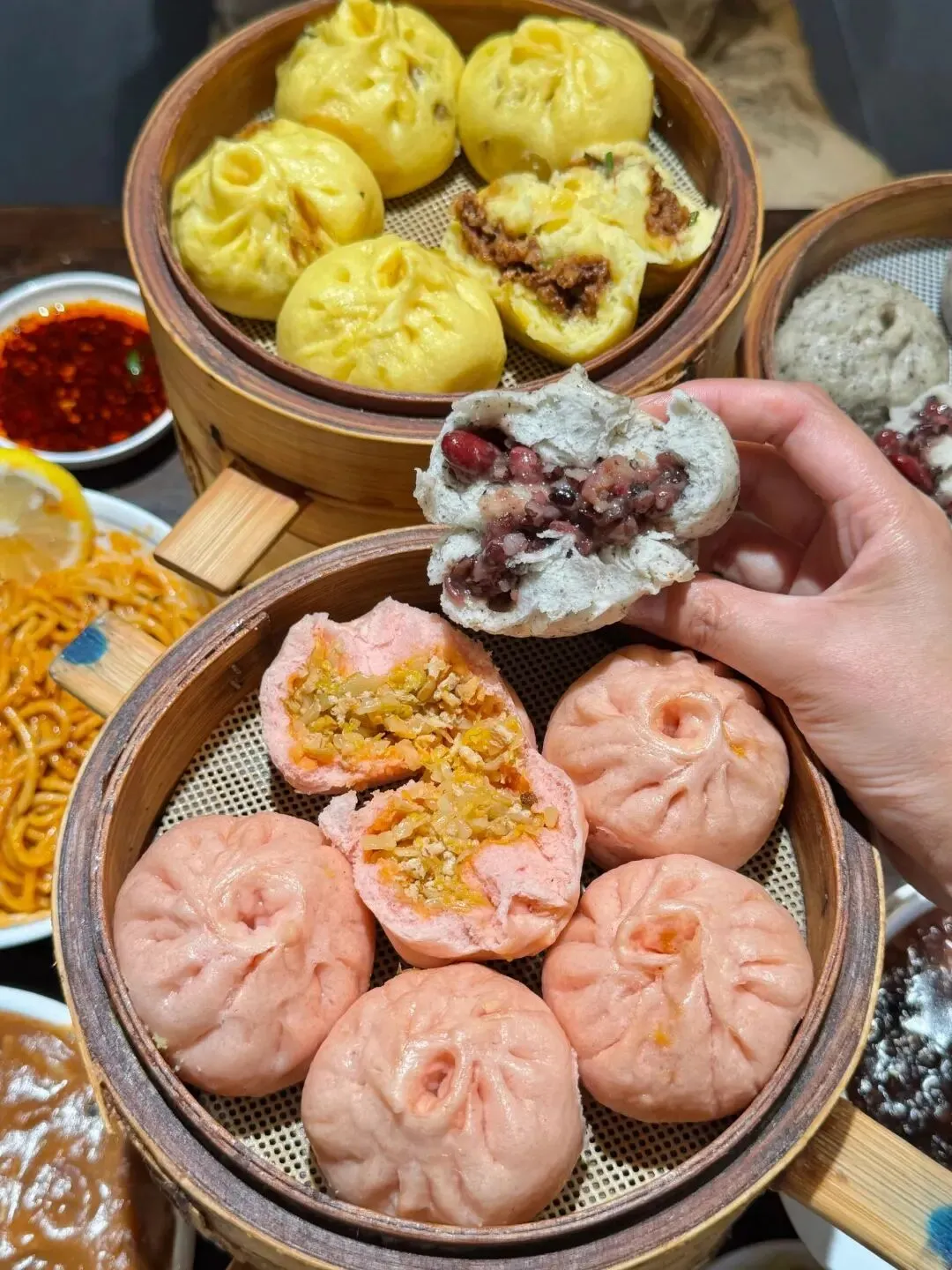 南瓜酱肉包、黑芝麻红豆包、红云酸菜包、火鸡面包、红油火锅包…根本吃不过来!!