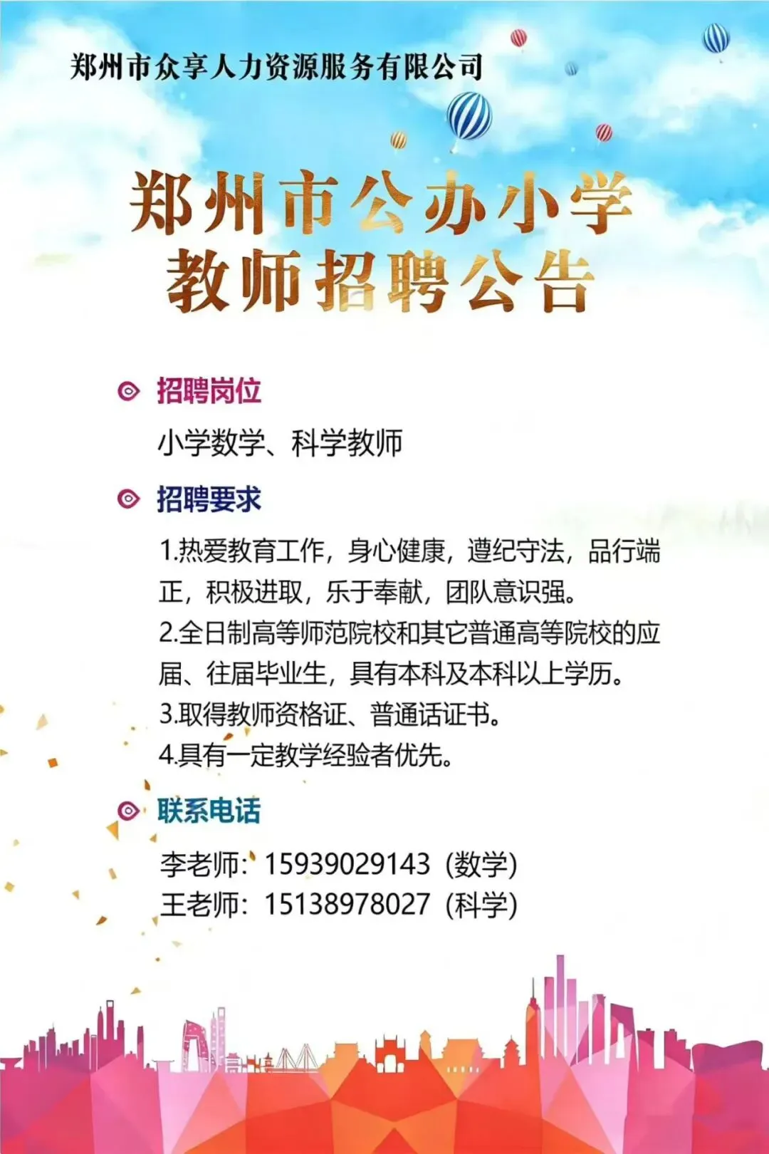 【郑州招教】郑州市公办小学招聘教师公告(报名时间:即日起)
