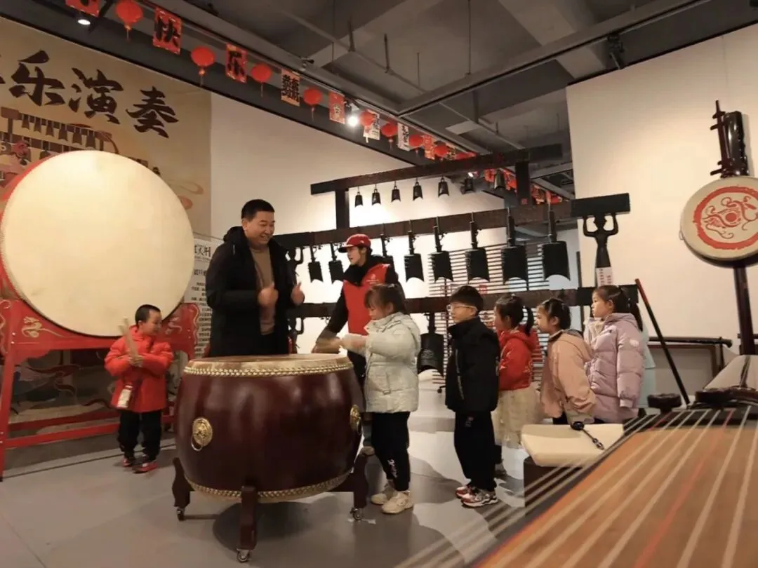 而在雅乐演奏体验区,小家伙们拿起鼓槌,虽然节奏还有些凌乱,但那股子精气神却毫不含糊。咚咚的鼓声伴随着呐喊声,仿佛敲醒了春天的生机,也敲开了孩子们对传统民乐的好奇心。