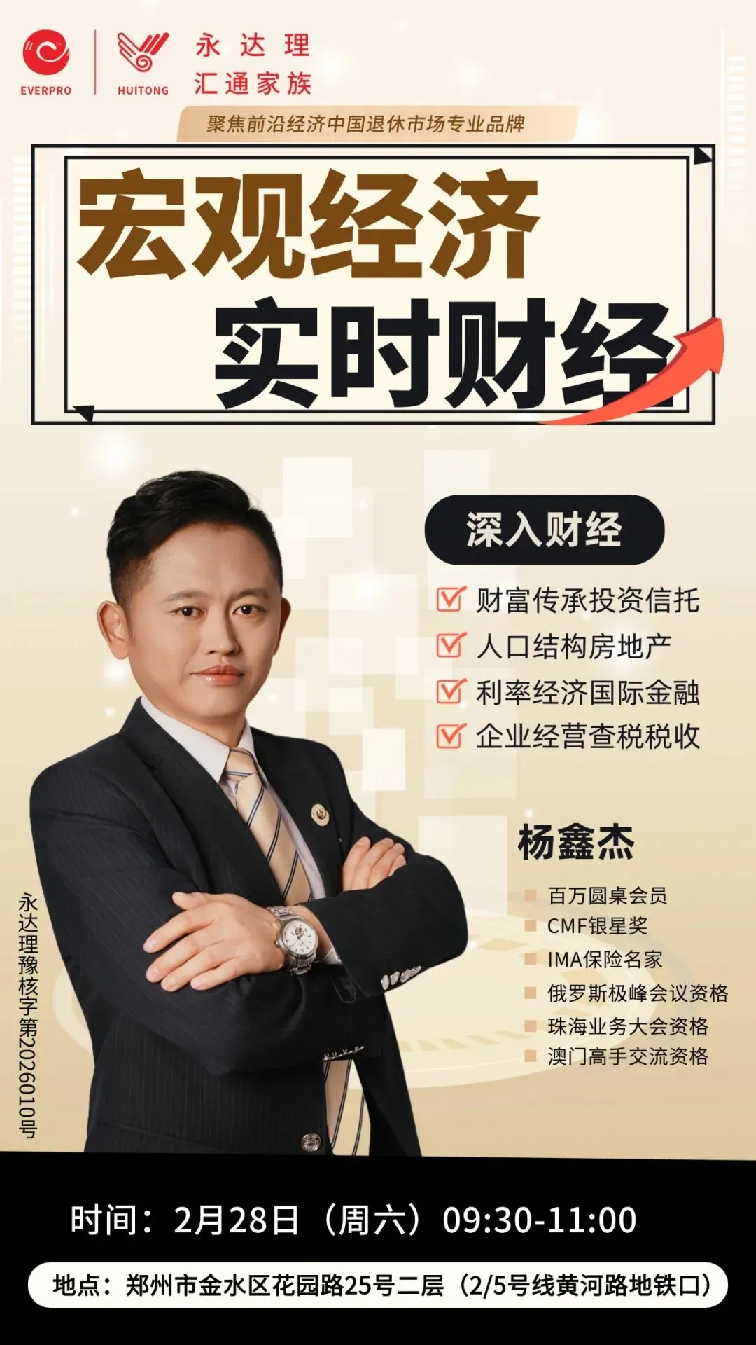 本场财经讲座由永达理保险经纪公司河南分公司主讲,不售卖产品,欢迎报名。