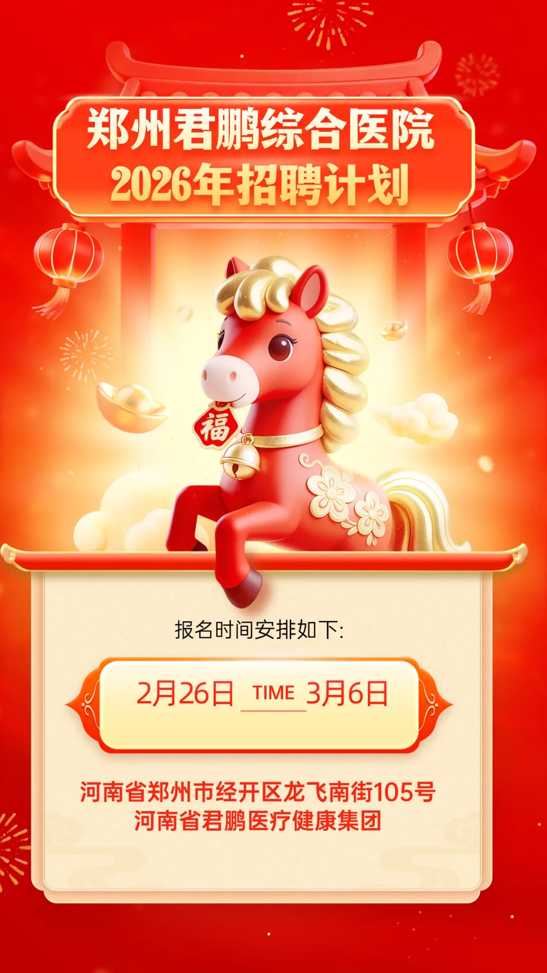 郑州君鹏综合医院招聘公告【至3月6日】