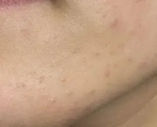 闭口粉刺通常都是肉色或透明凸起小颗粒,远看可能看不大出来,要用手摸才感觉得到疙疙瘩瘩的,不红不肿不痛不痒,也有的人侧着光的时候,会看得出来脸上不平整。