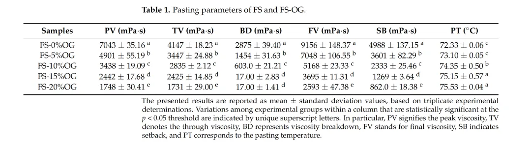 探究了不同浓度的燕麦β-葡聚糖(OG)对蚕豆淀粉(FS)体外消化特性的影响。