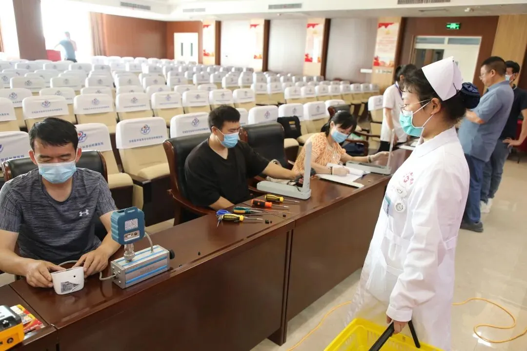 在检定工作现场刘宏伟主任重申了计量器具检定的重要性及必要性,对本次检定专家科学分工并制定了详细的工作流程,检定工作在不影响临床使用的情况下顺利进行。