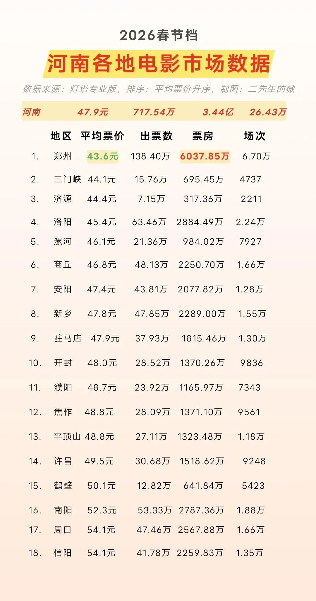 春节期间走进影院观影,已成为河南各地居民欢度佳节的重要方式之一。然而,电影票价的区域差异却在春节档期尤为凸显:数据显示,信阳、周口、南阳三地的观众每观看一场电影,平均票价竟比省会郑州的观众高出近10元,部分热门影院甚至溢价超过15元,堪称“河南三贵”。在全省春节档电影平均票价排行榜中,这三个城市稳居前列,成为票价高地。反观郑州、三门峡、济源、洛阳等地,票价却保持在相对亲民的水平,甚至成为周边城市观众“跨城观影”的首选地。为何同处一省,观影成本却相差如此之大?究其原因,或与影院运营成本、区域消费习惯、热门影片排片策略以及春节期间人口流动等因素密切相关。信阳、周口、南阳等地虽非省会,但人口基数庞大,返乡人群集中,节日期间观影需求激增,推动票价水涨船高。而郑州作为影院密集、竞争激烈的市场,反而因供给充足、促销频繁,维持了较低的平均票价。因此,并非“信阳周口南阳人真钱多”,而是市场供需关系在特定时间节点下的真实反映。对此你怎么看?欢迎点评留言!