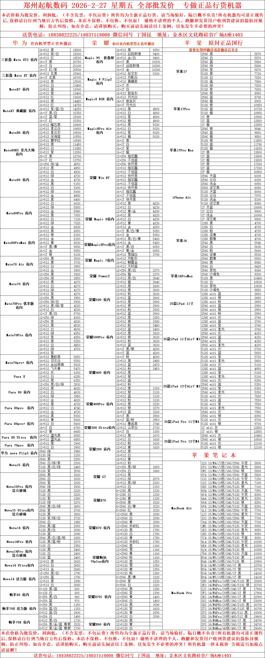 当前位置:首页>郑州>郑州起航数码2026.2.27报价