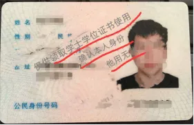 上传的身份证正反面可参考下图做简单处理(将透明胶带粘贴在需标记处并做好文字标注)
