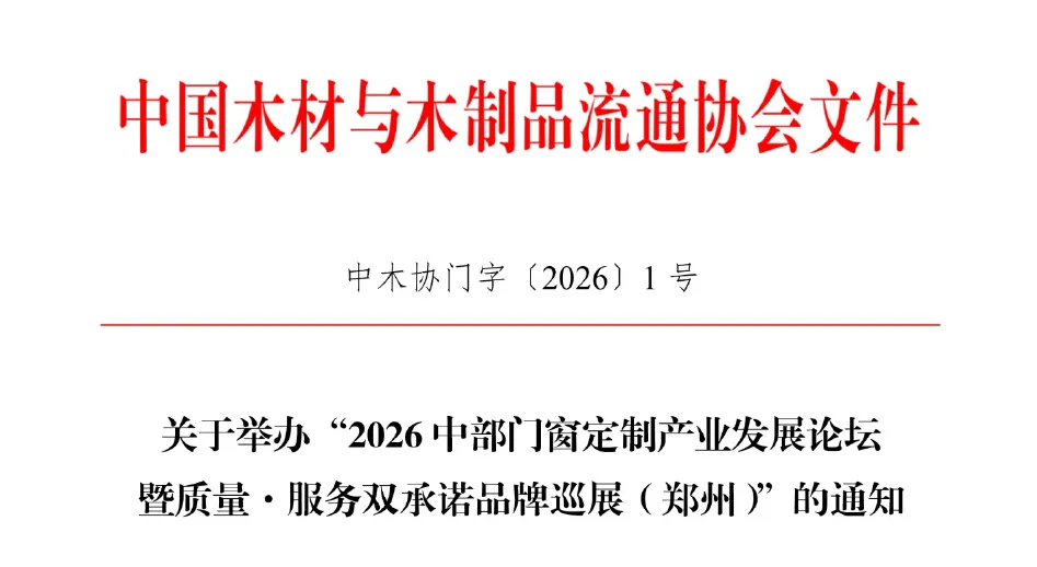 为把握新发展机遇,聚力推动中部门窗定制产业迈向新高地,我会定于2026年3月6日在郑州举办“2026中部门窗定制产业发展论坛暨质量·服务双承诺品牌巡展(郑州)”活动,现将有关事宜通知如下: