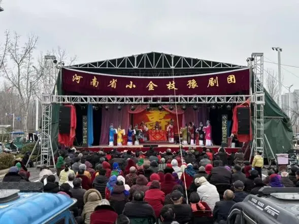 2026年春节期间,郑州航空港的基层办事处、乡镇、社区张灯结彩、喜气洋洋,一场场由专业院团和群众自编自演的文化活动轮番上演,让辖区百姓在家门口尽享丰盛的“文化大餐”,度过了一个韵味悠长、热气腾腾的文化年。春节期间,龙王办事处辖区的园博园南门广场上人头攒动、暖意融融。由办事处精心组织的戏曲公益演出在这里鸣锣开唱,河南省小金枝豫剧团的艺术家们为父老乡亲奉上了为期六天的精彩演出。