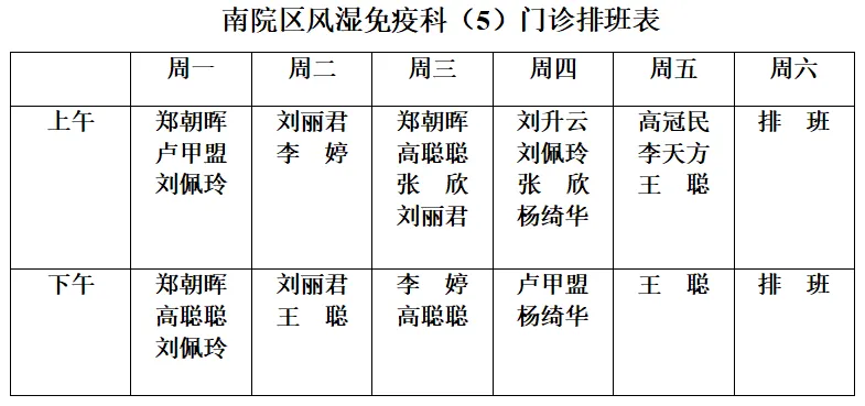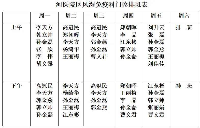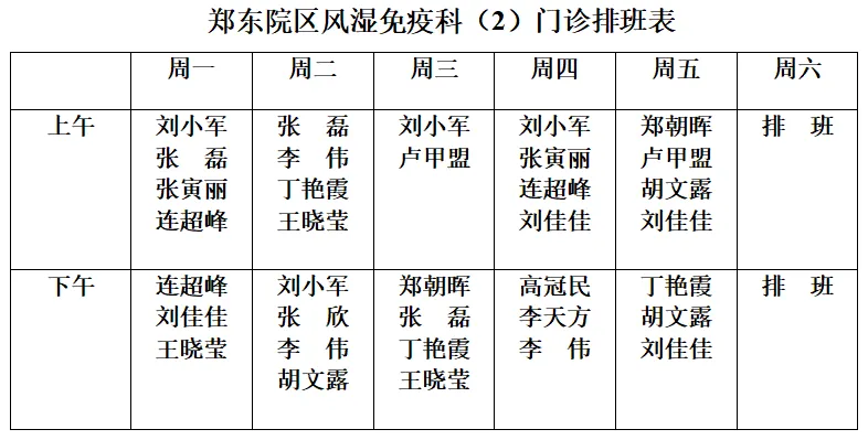 2026年郑州大学第一附属医院风湿免疫科门诊排班表