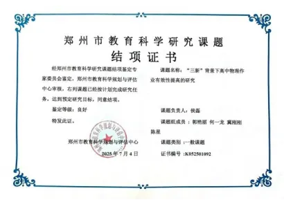 2025年,教研组共参与各级课题3项,成功结项1项,相关课题课例在学校公众号发表,实现教研成果辐射共享,以研促教、以教反研,形成良性循环。