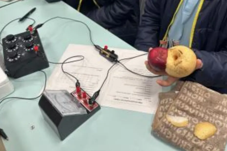 打破课堂局限,开展“走进实验室”实践活动,引导学生动手操作、主动探究。学生自主设计实验方案,动手测量水果电池的电动势和内阻,开展“苹梨电池”探究实验,在动手实践中理解物理原理、锤炼探究能力,让抽象的物理知识变得可触摸、可感知。
