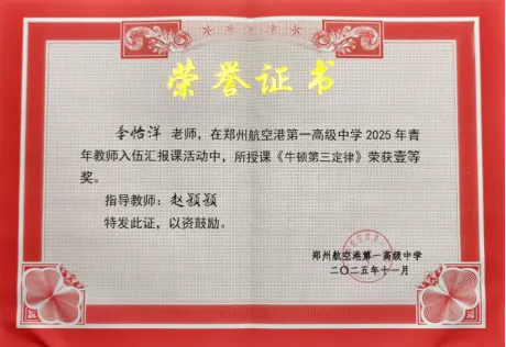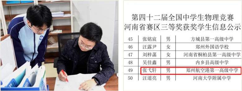 精准发力学科竞赛,创建物理竞赛社团,常态化开展思维训练、专题辅导,挖掘学生学科潜力。在第四十二届全国中学生物理竞赛中,高三学生张弋轩(指导教师:郭子平)斩获省级三等奖,实现我校物理学科竞赛“零”的突破,为学子成长赋能,为学科发展添彩。