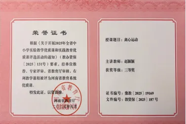 秉持“一人上台、全组护航”的团队理念,凝聚集体智慧,助力教师参赛成长。在2025年全省中小学实验教学优质课评选中,赵颖颖、李燕蒙两位教师凭借扎实的教学功底、创新的教学设计,均荣获省级三等奖和市级一等奖,用实力彰显教研组的教学实力。