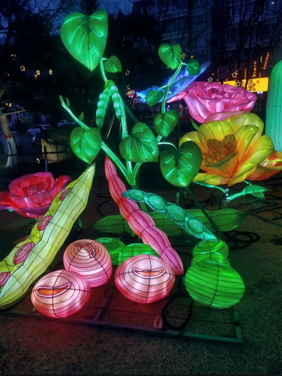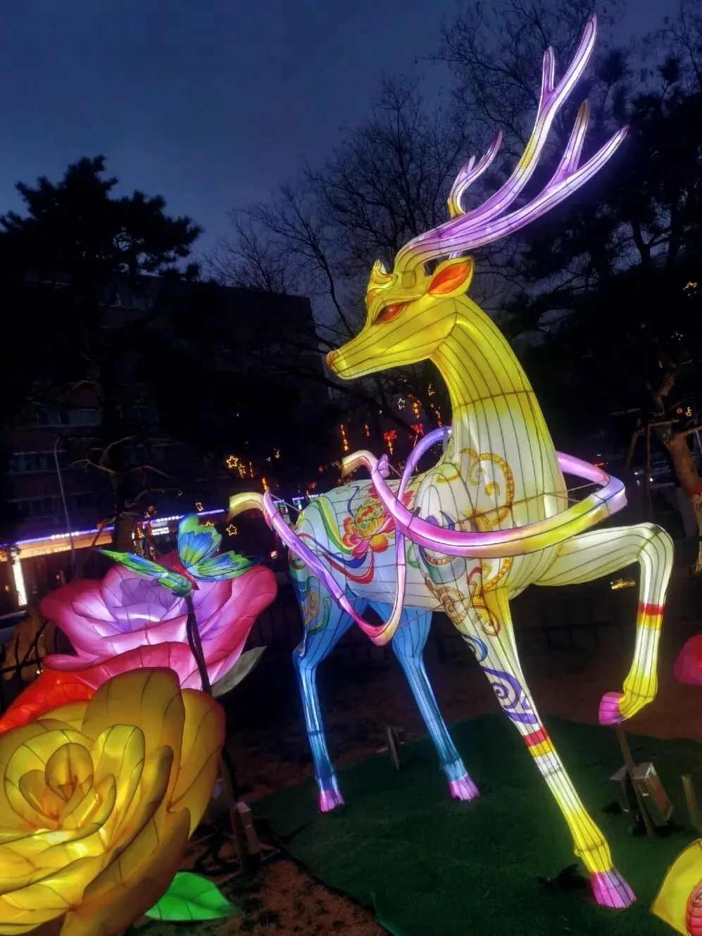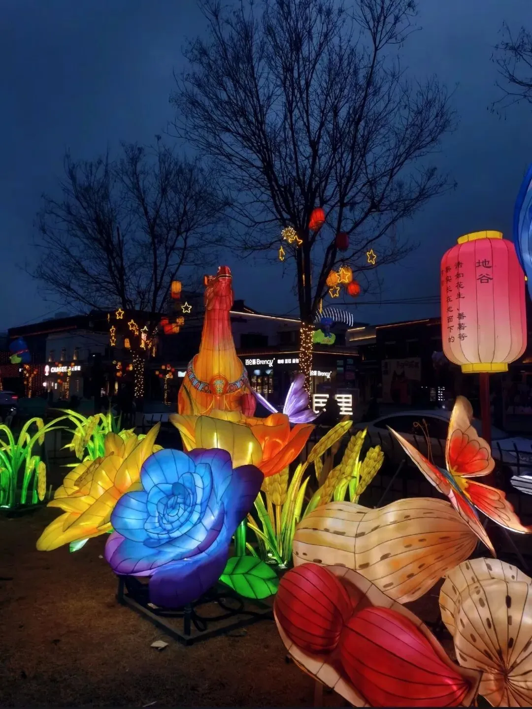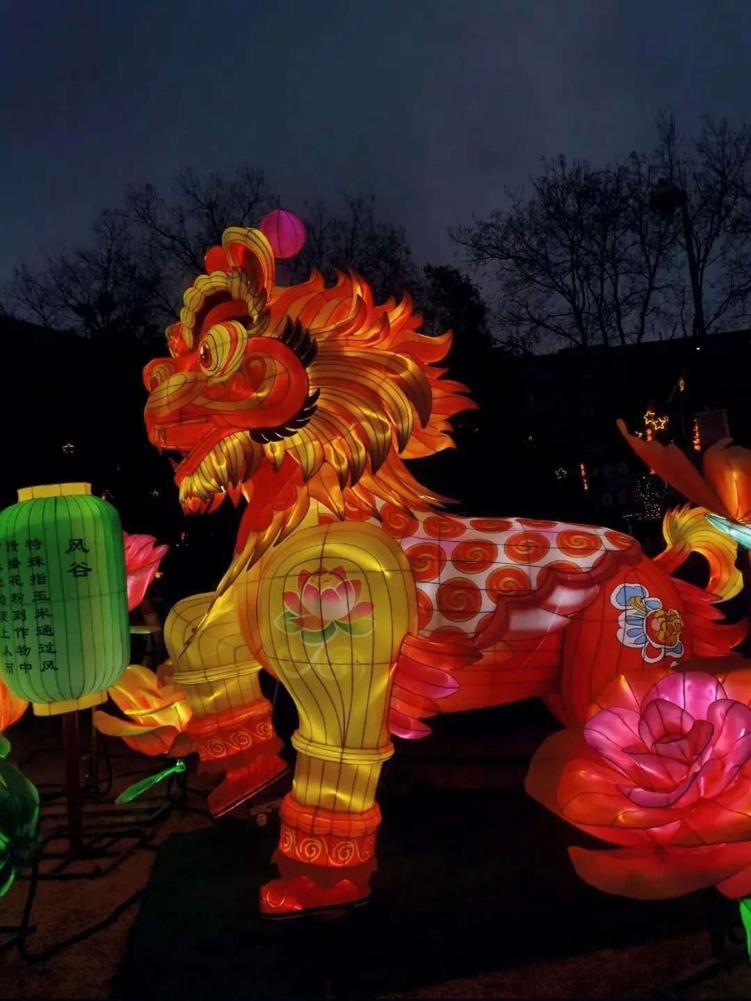 穿过地平门南顺城街,一组组以“马”为元素的灯组便撞入眼帘。五匹形态各异的骏马灯组错落分布,有的昂首嘶鸣,鬃毛似被风扬起,在暖黄灯光下仿佛下一秒就要踏碎夜色奔腾而出;有的低头饮水,神态灵动可爱,引得孩童们欢呼雀跃。这些灯组巧妙融合了甲骨文“马”字的象形特征与现代光影技术,既彰显了马年“龙马精神”的昂扬气韵,又暗合了郑州作为商都的历史底蕴。我驻足于一匹“剪纸风”骏马前,红彤彤的灯影透过镂空的纹路,在地面投下斑驳的光影,恍惚间竟似穿越回商周时期的祭祀场景,耳边仿佛响起青铜器碰撞的清越之声。