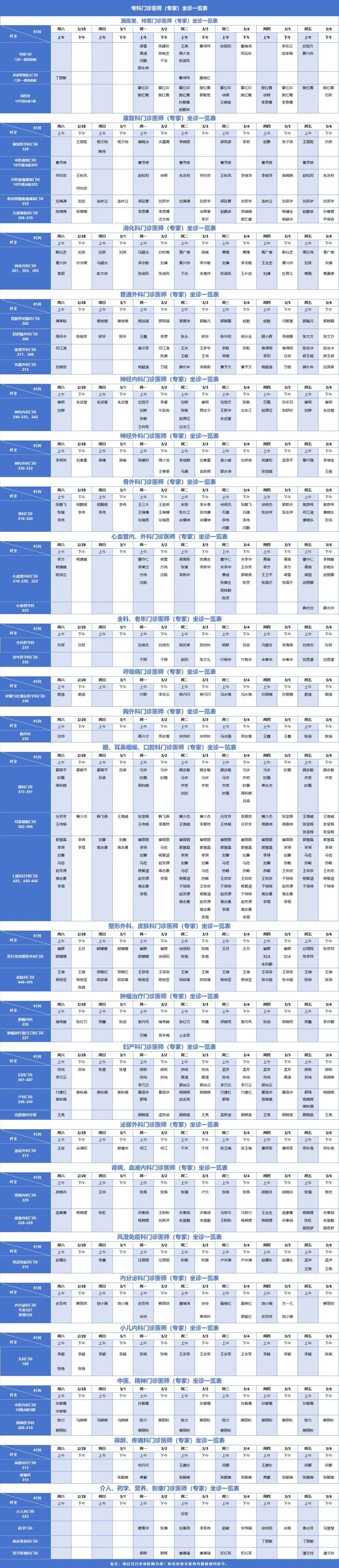 专科门诊医师(专家)坐诊一览表