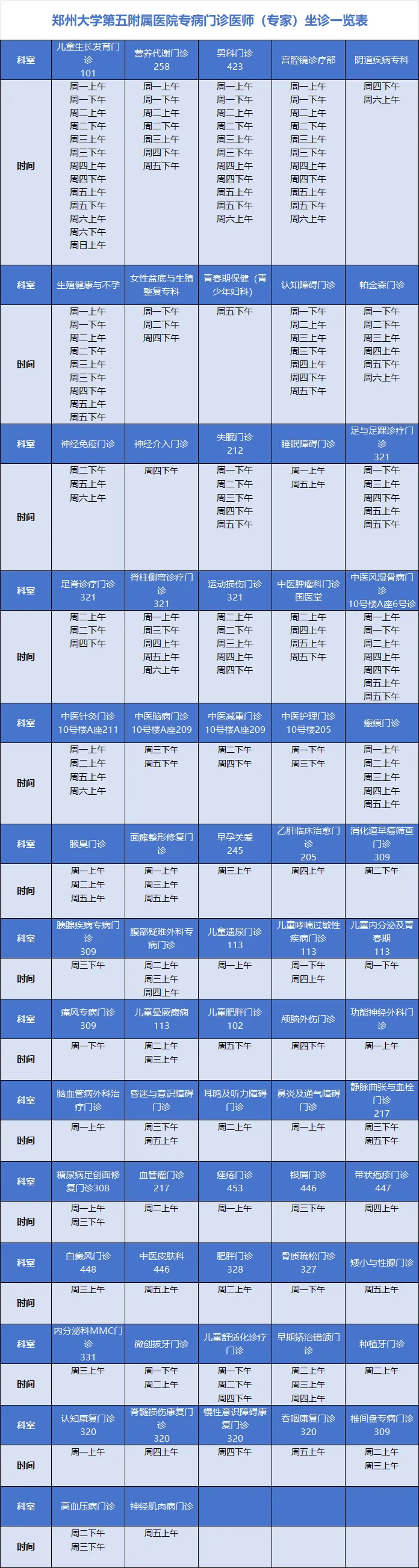 专病门诊医师(专家)坐诊一览表