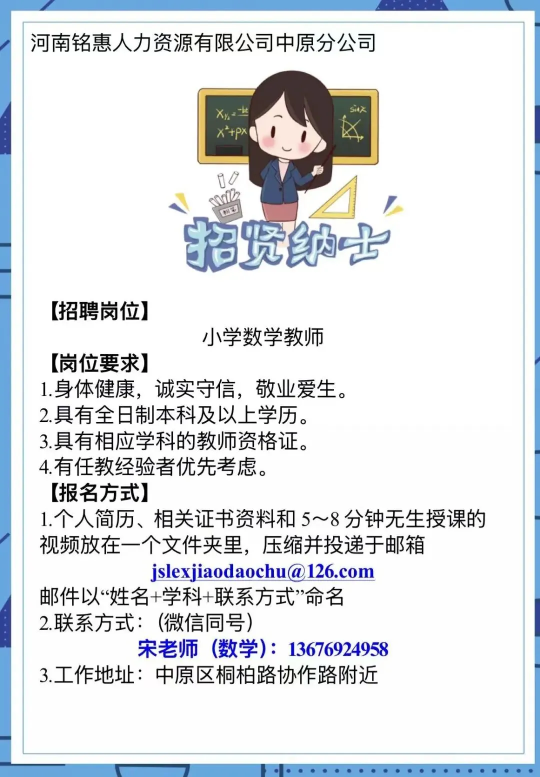 郑州某公办小学现需要小学教师若干名: