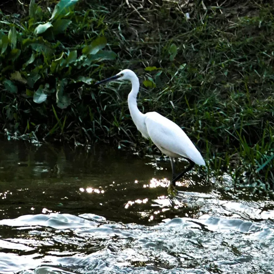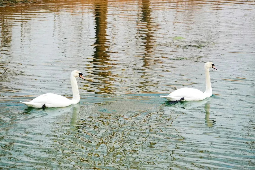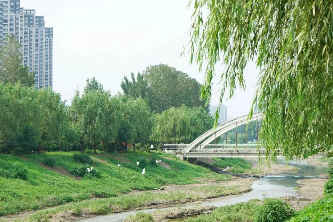 三公里长的河文化公园,水天一色,相映成趣,优越的自然环境,吸引了国家保护动物——白鹭、天鹅在此流连栖息。