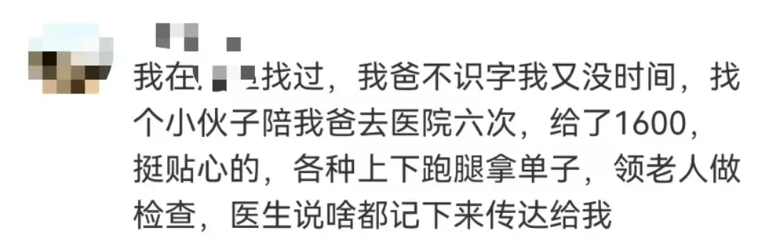 (部分人群在网上发布需求)陪诊师就是陪伴病人在医院就诊,具体的内容有:规划就医流程,代替挂号、排队、收费等,可以省去很多的时间与精力,目前市场也开始规模化发展。