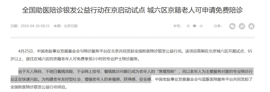 随着老龄人口比列的上升,以及年轻人独自在大城市打拼,一旦生病,同样需要有人陪伴和协助
