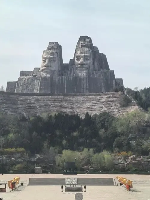 炎黄二帝像就在北边的景区里,站得高,风也大,拍完照把外套拉上拉链就好。