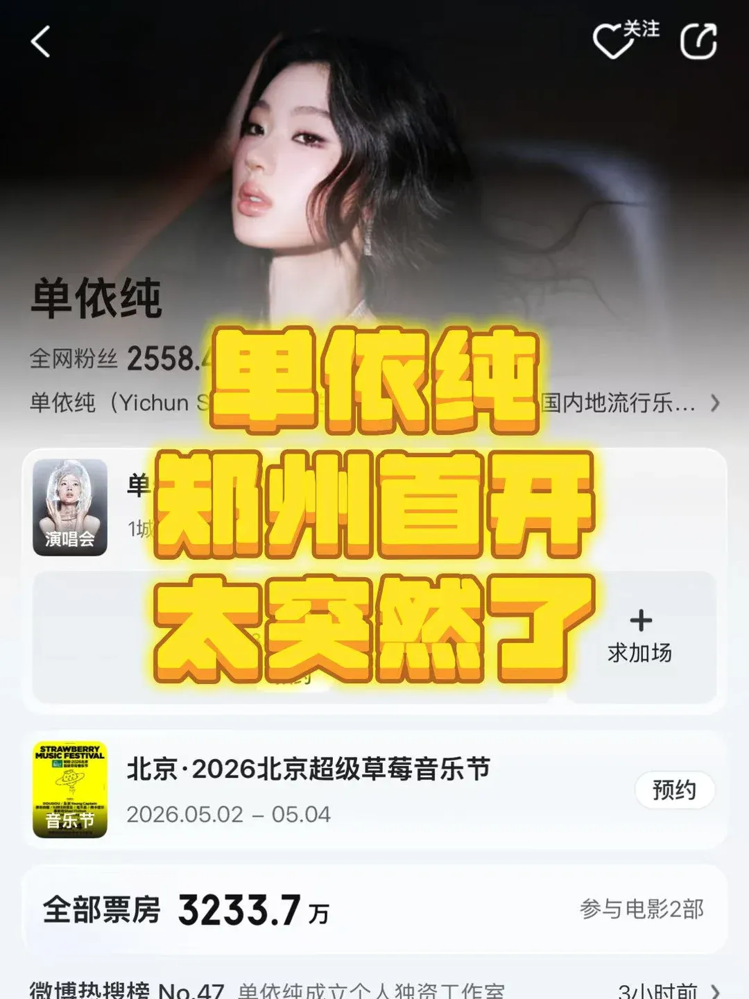 官宣!单依纯郑州首秀定档!
