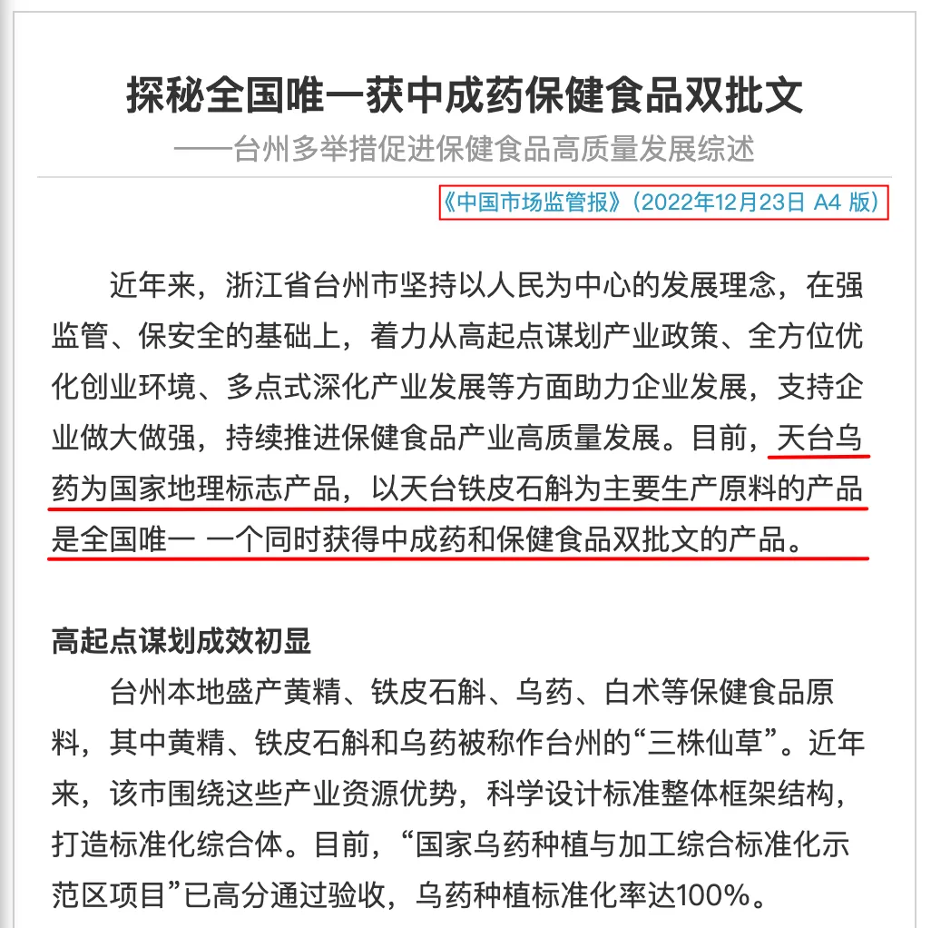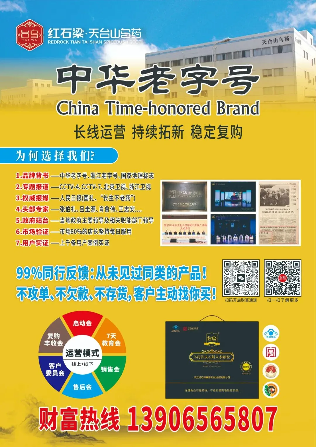 始创于1855年的“台乌”品牌,历经六代传承,被认定为中华老字号和浙江老字号,产品工艺获国家发明专利,核心原料天台乌药列入国家地理标志保护,并被浙江省政府列为新“浙八味”。