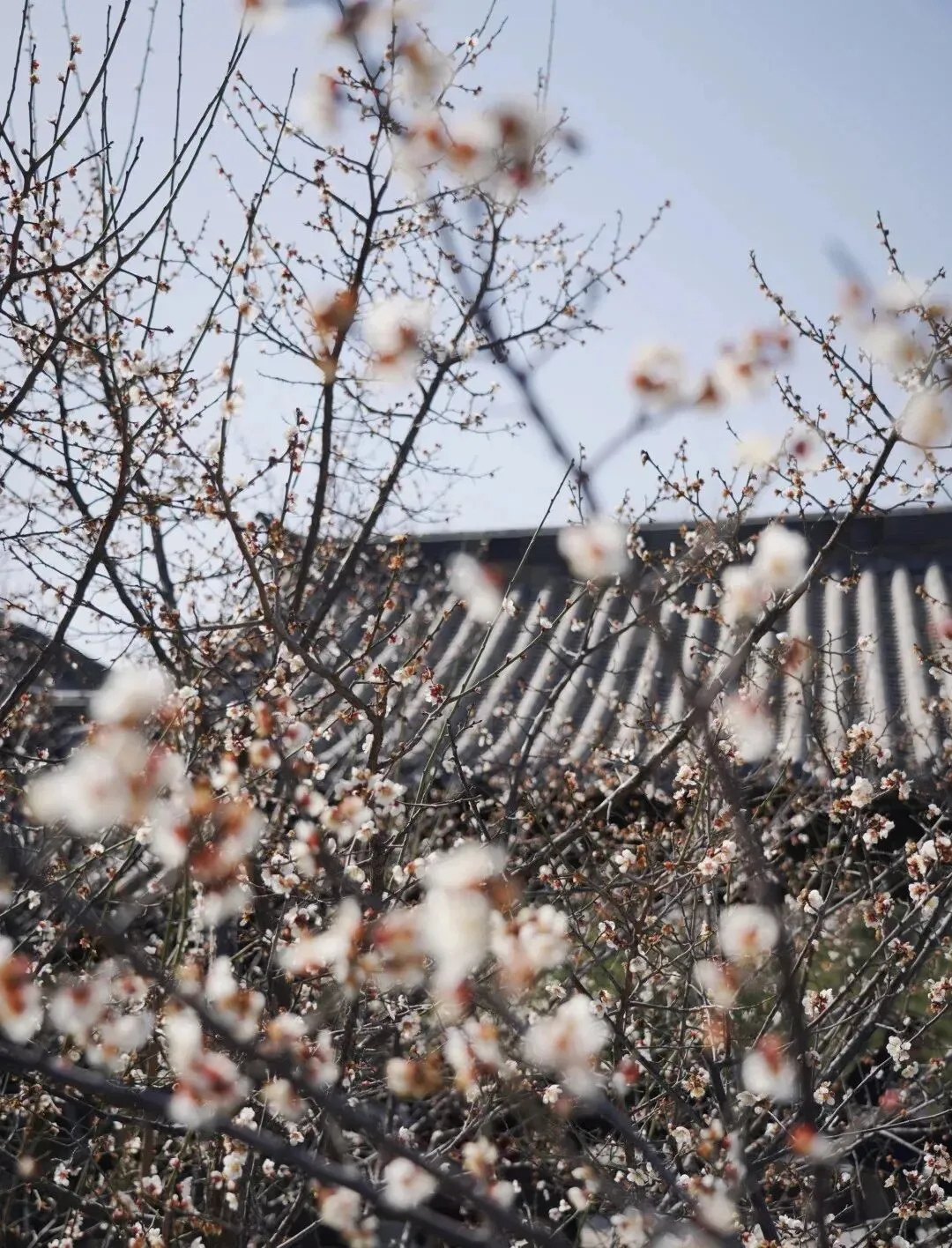 宫粉梅娇俏粉嫩,缀满枝头似云霞漫卷,温柔又灵动;