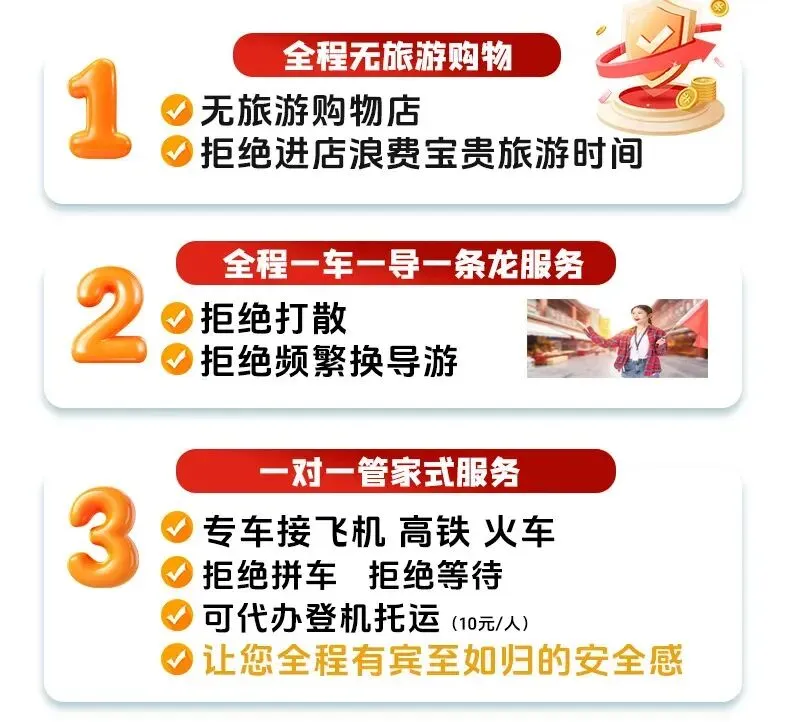 1、在不减少景点的前提下,旅行社导游有权根据实际情况,适当调整景点游览顺序。如遇人力不可抗拒因素或政府政策性调整或景区原因临时关闭,将另行安排时间游览;如行程时间内确实无法另行安排,将按照旅行社折扣价将门票费用退还游客,不承担由此造成的损失和责任。行程中赠送的景点,如无法游览,不退任何费用。