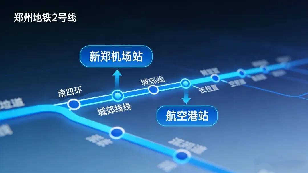 2号线纵贯郑州南北,连通贾鲁河气脉与金水河节点,南三环、南五里堡站因周边居住区密集,成为通勤人气大站;而与2号线衔接的城郊线,从南四环直达郑州航空港站,42.9公里的线路串起华南城、新郑机场、航空港,正是郑州龙气向南延伸的关键。