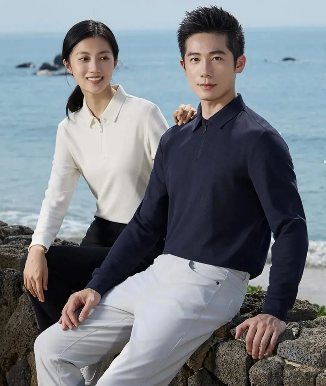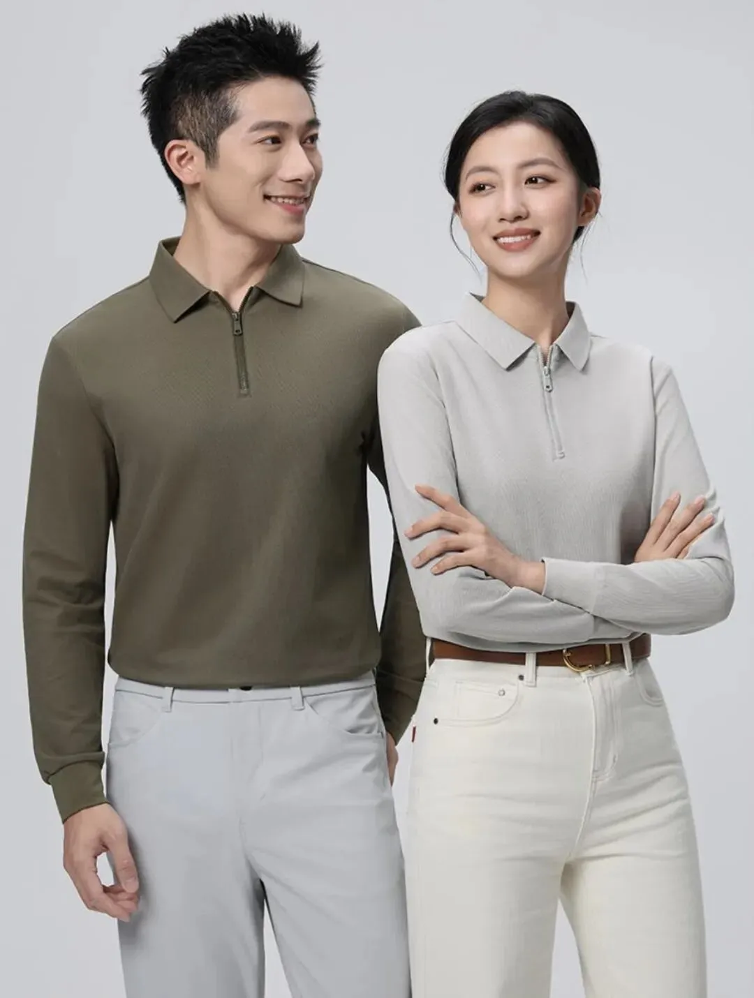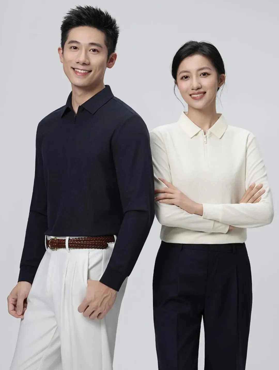 第一款:PSC 8879款,羊毛热力绒,二级领无缝压胶长袖POLO,260G,材质:46.7%聚酯纤维 20.9%莫代尔 20%棉 8%绵羊毛 4.4%氨纶,价格158