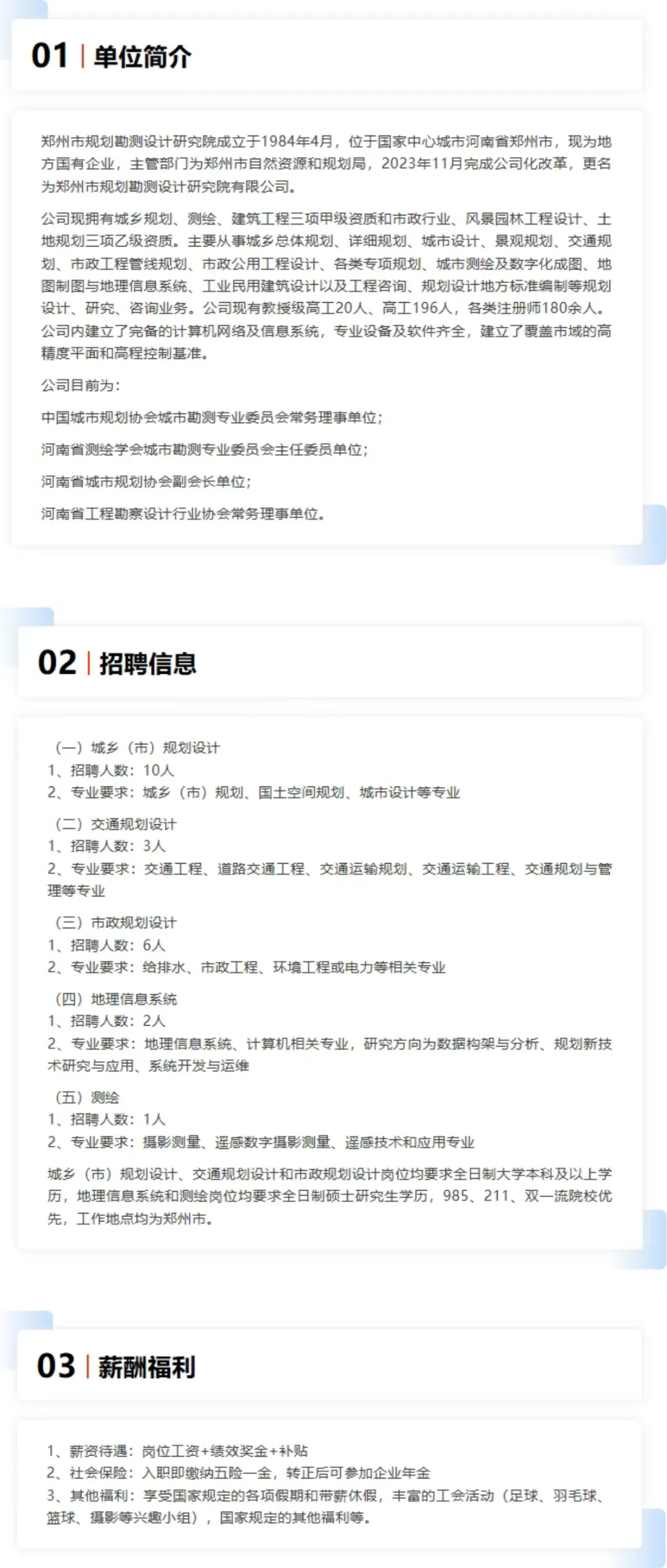专业:地理信息系统、摄影测量、遥感技术与应用、遥感数字摄影测量、城乡规划、国土空间规划、城市设计、交通工程、道路交通工程、交通运输规划、交通运输工程、交通规划与管理、给排水、市政工程、环境工程、电力等相关专业。