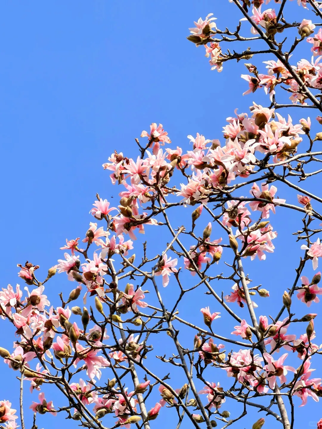 藏着不逊色的春日惊喜,粉色玉兰缀满枝头,娇俏动人。