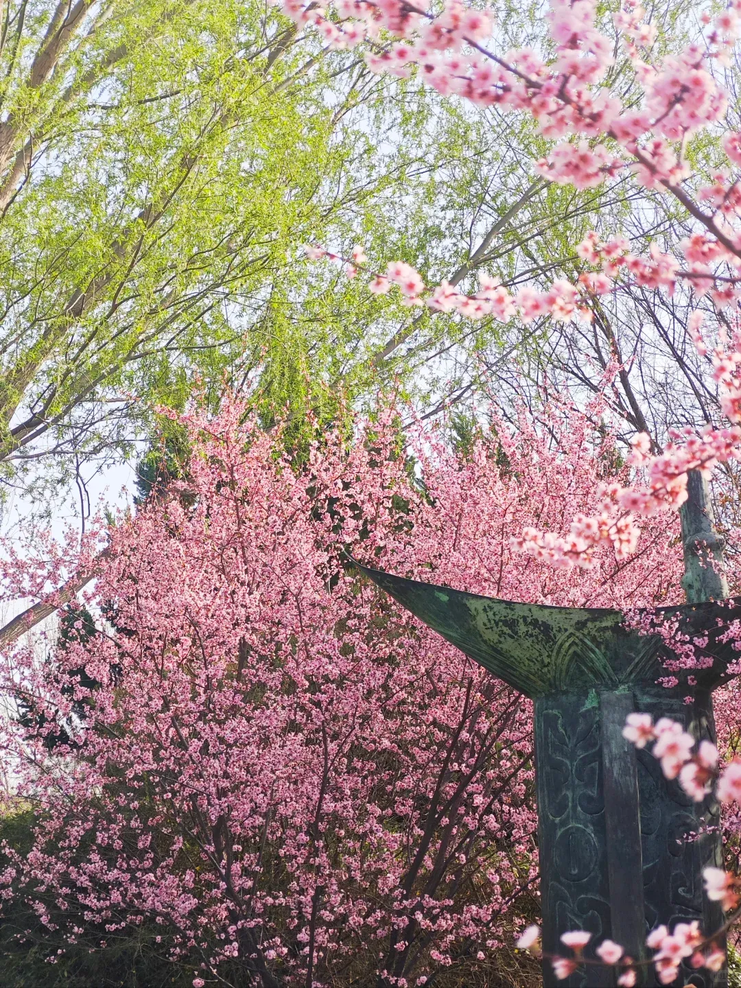 更惊喜的是,几棵樱花树已开得烂漫,粉白花瓣缀满枝头,春风一吹,氛围感直接拉满,春天的气息扑面而来。