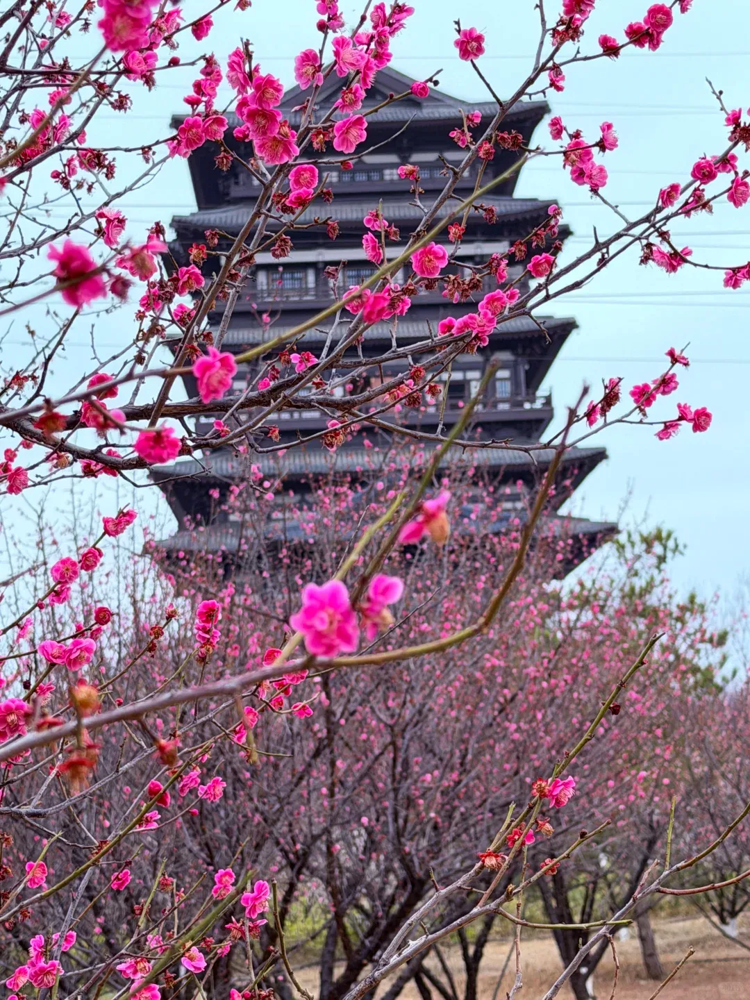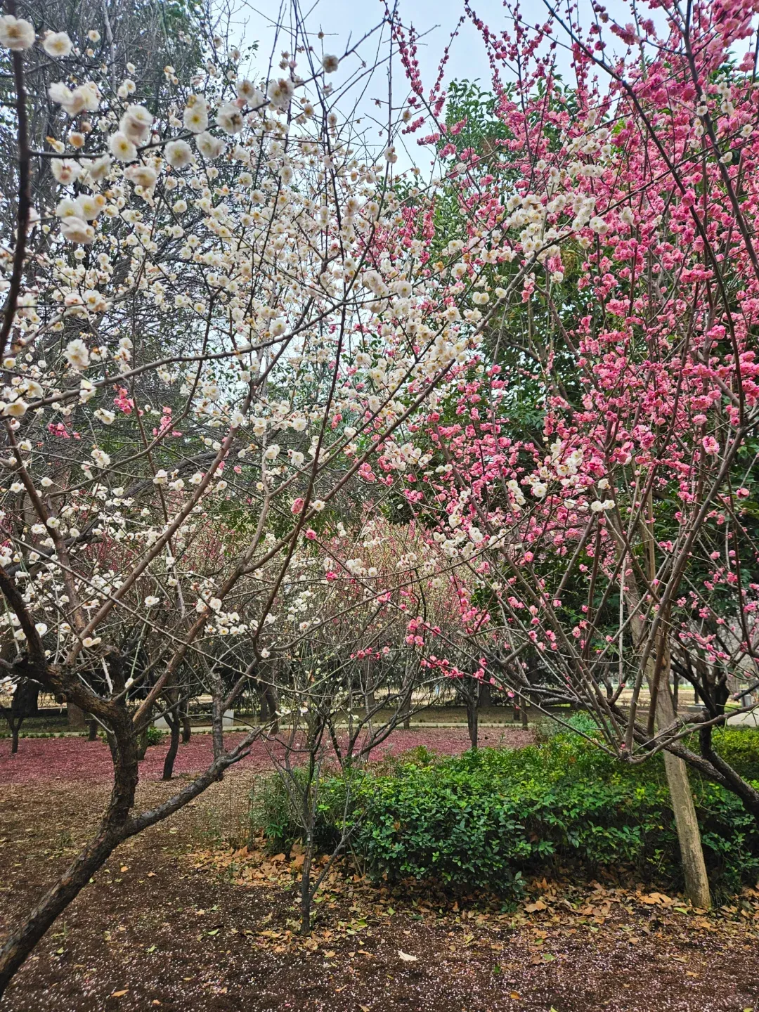 小众赏梅点位,有一小片梅花开得极盛,远远望去如一片红云,热烈又惊艳。