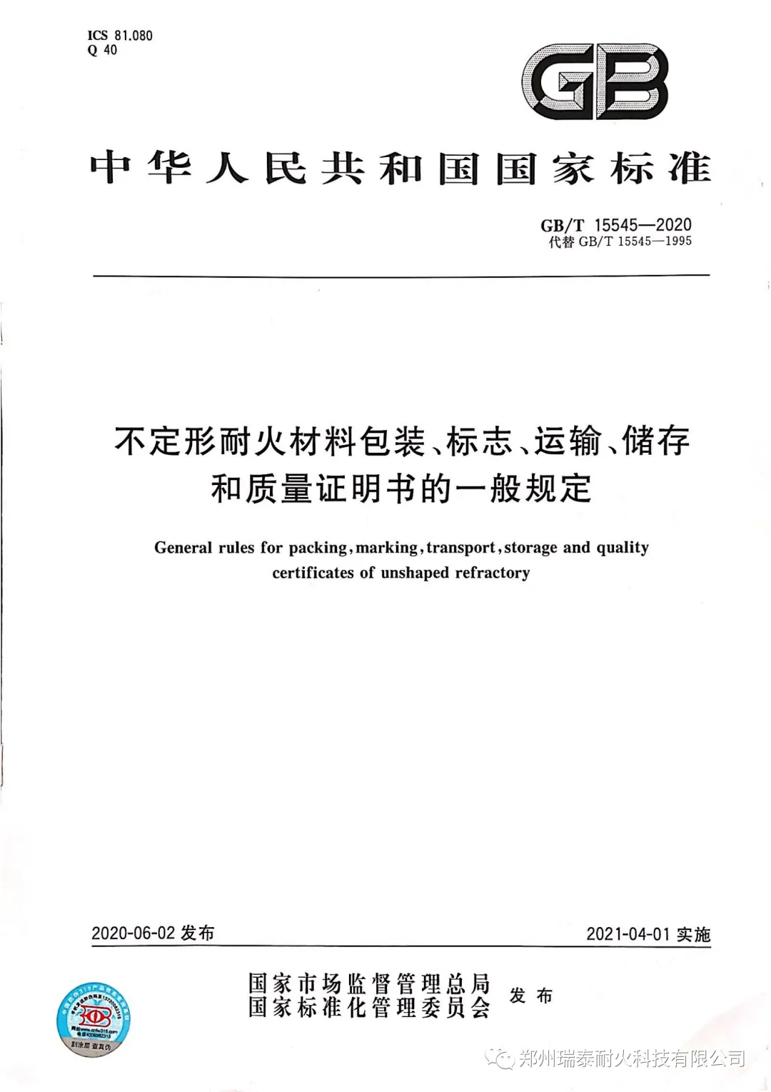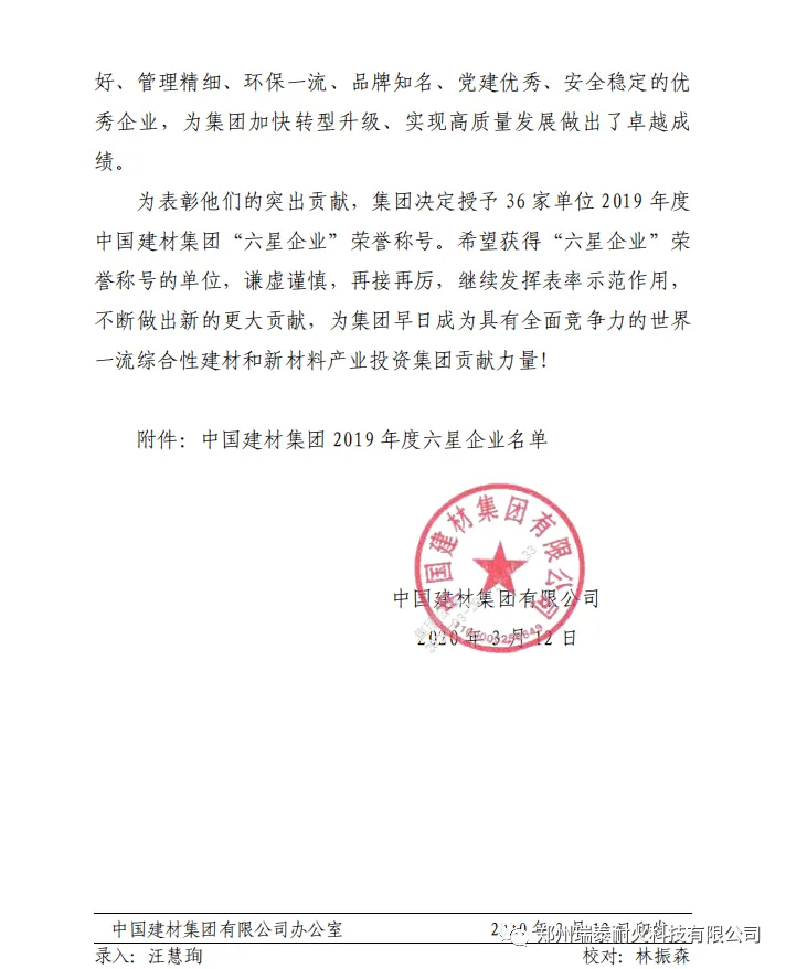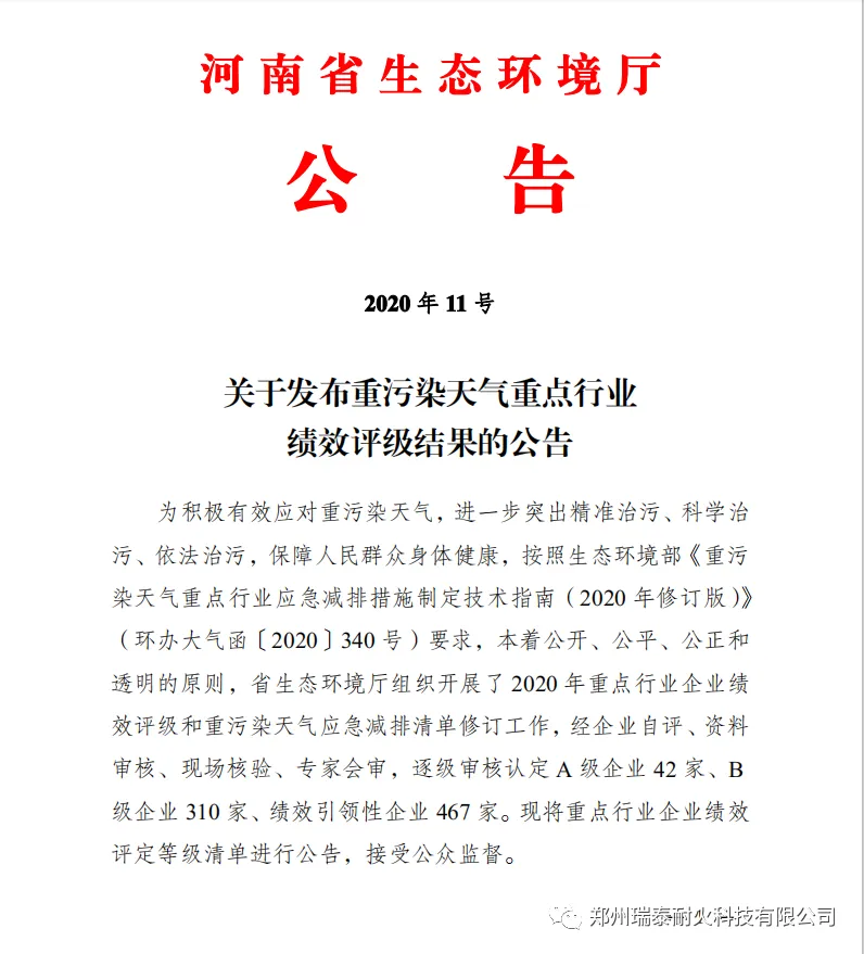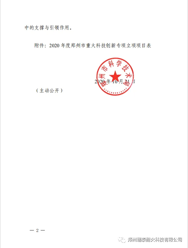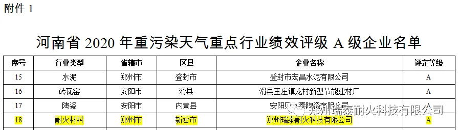 2020年,郑州瑞泰被评选为郑州市领军型企业,环境友好型耐火材料智能制造车间被评选为河南省省级智能车间。