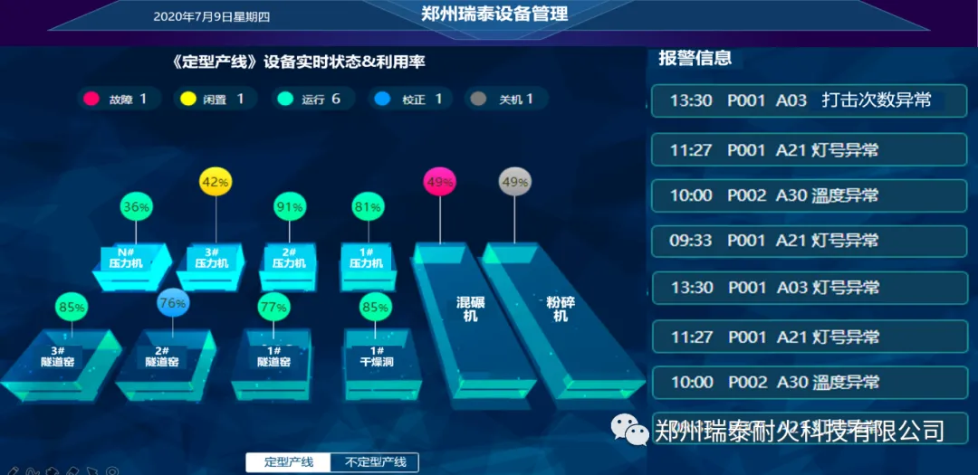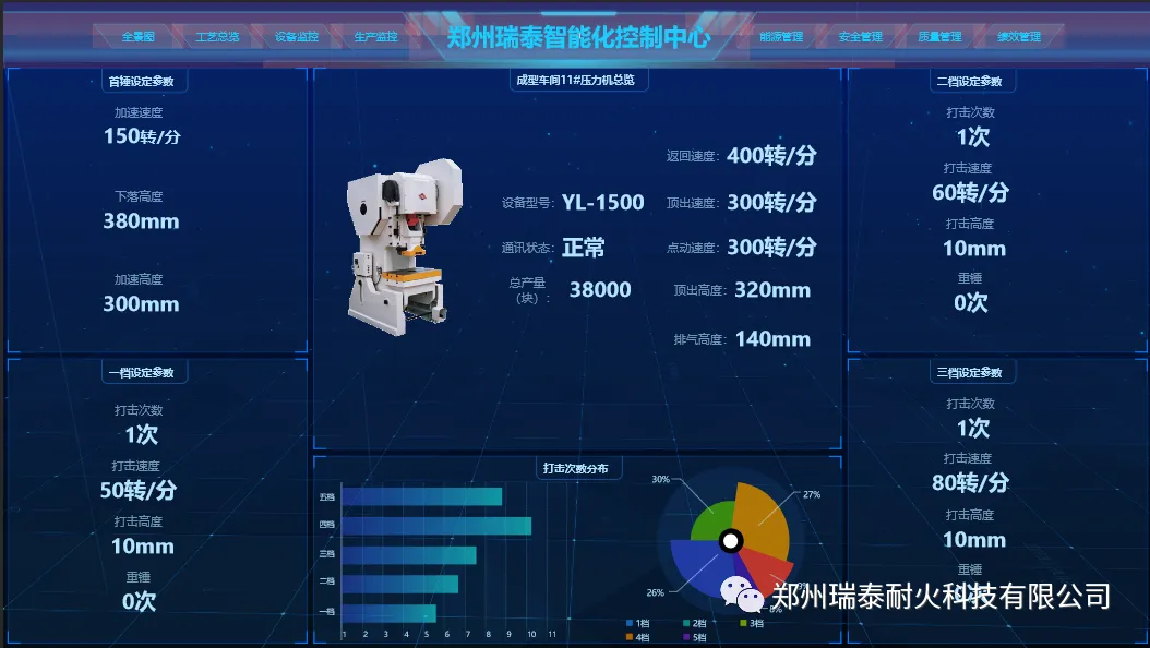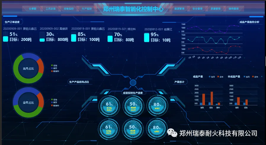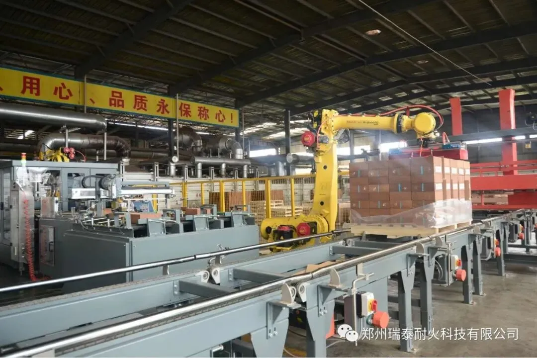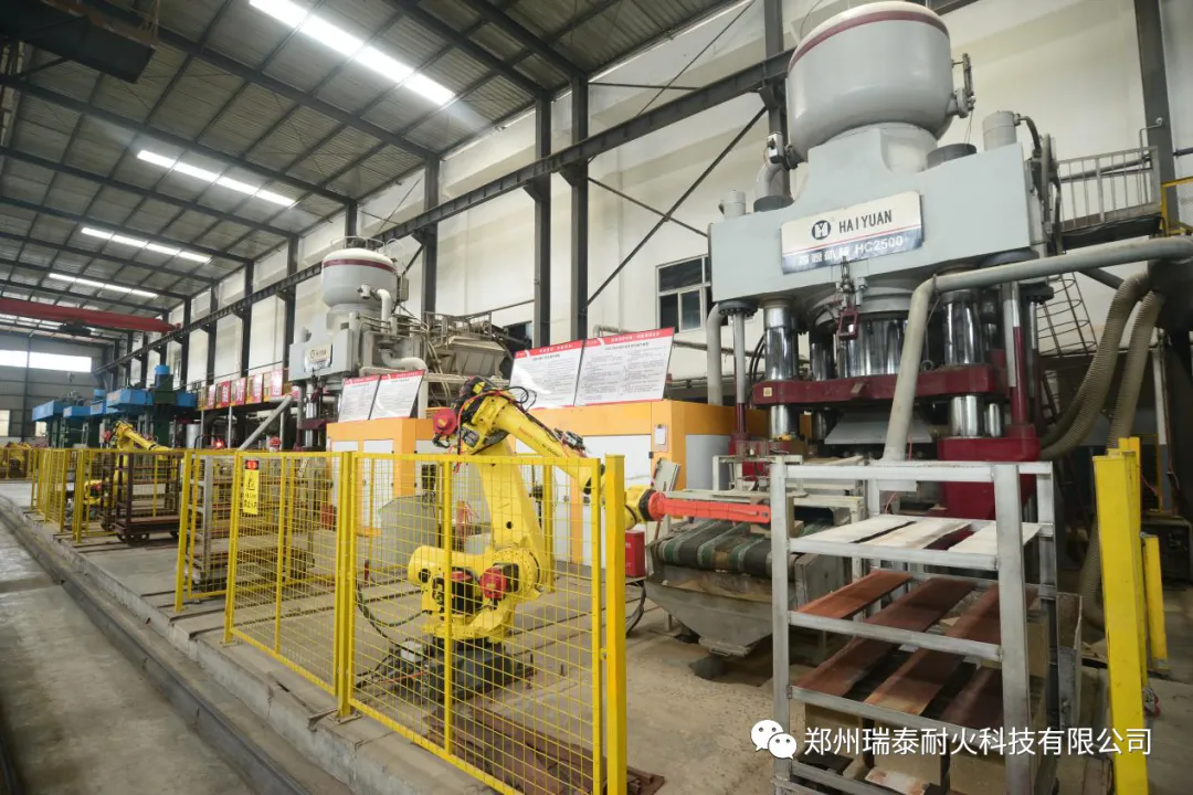 郑州瑞泰建成的ERP系统、PLM系统、PMS系统和OA系统,提升了技改研发、生产销售、经营管理智能化水平,建成自动配料系统、自动混碾系统、全自动液压成型设备系统、工业机器人、智能检测包装生产线等,实现了全流程自动化智能化。通过智能化改造,产品技术指标显著提升、人均产量和生产效率大幅增加、吨砖综合能耗远低于行业指标,智能制造成果居行业领先水平。