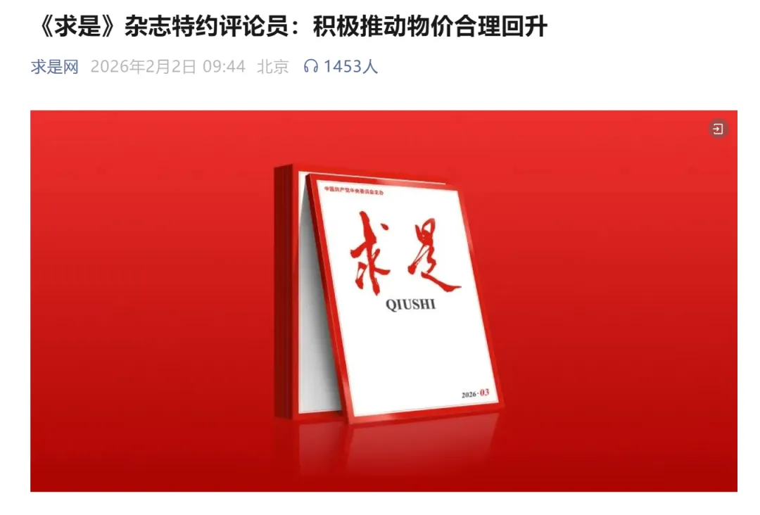 2月2日《求是》刊登了《积极推动物价合理回升》文章,全文其实就说了一句话:推动物价回归合理价格的必要性和合理性。这里的物价,房价是关键一环。