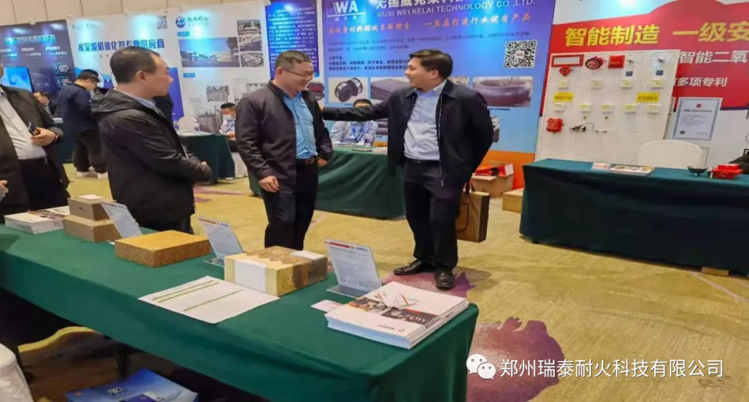 会后,山水水泥、万年青水泥、南方水泥、中联水泥、华新水泥等客户前来展台参观交流,客户纷纷对郑州瑞泰的工业智能制造系统、现场数字化管理及生产工艺等方面产生了浓厚的兴趣;通过现场交流,大家对此次展出的节能绿色产品——低导热多层复合莫来石砖、节能复合结构件等产品给予了充分的肯定和认可。
