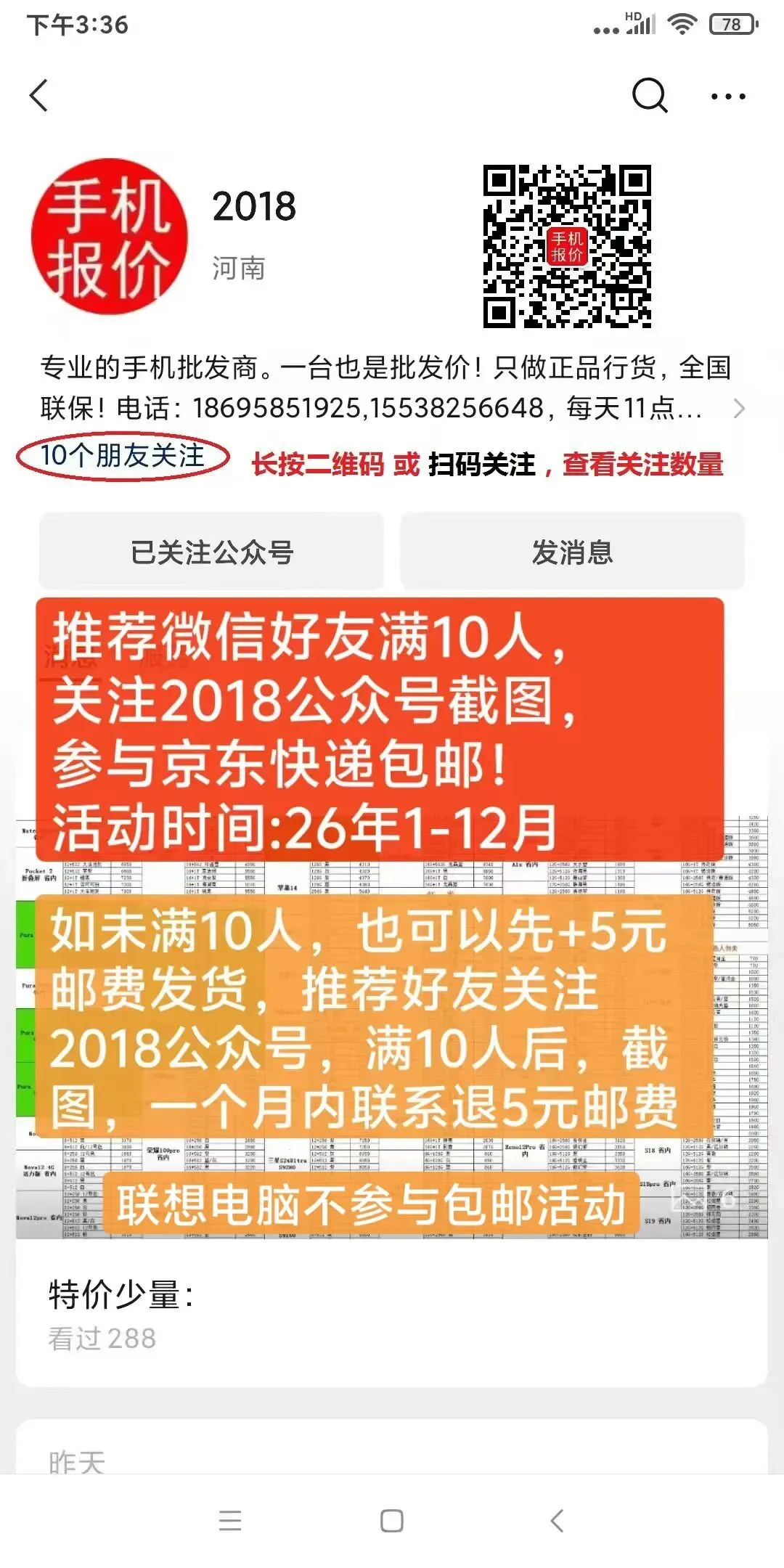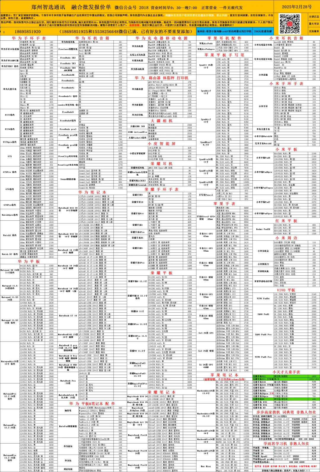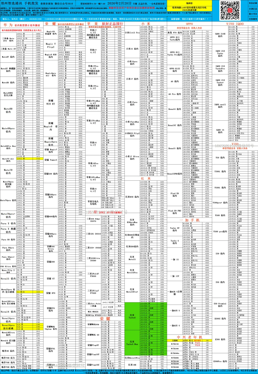 手机批发报价单!