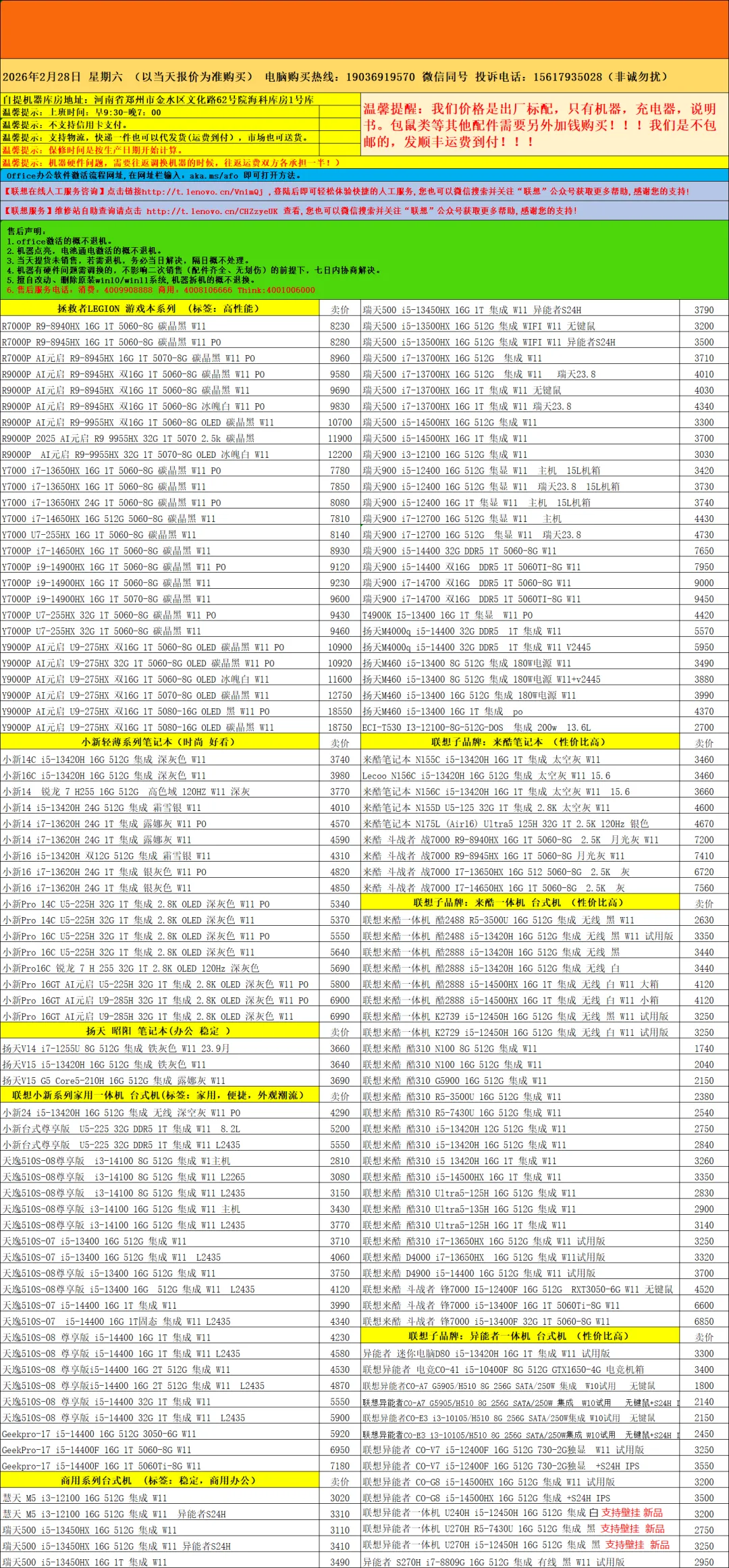 联想电脑批发报价单!