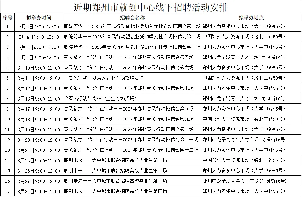 备注:郑州人力资源中心市场(郑州市二七区大学中路95号)