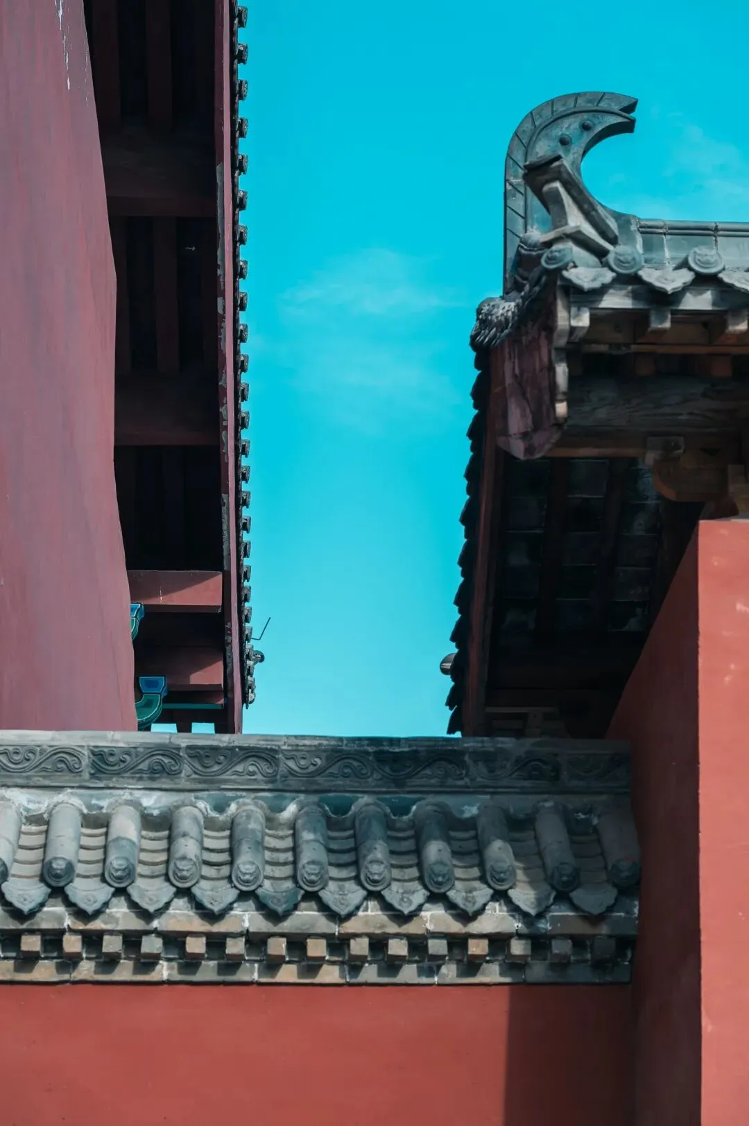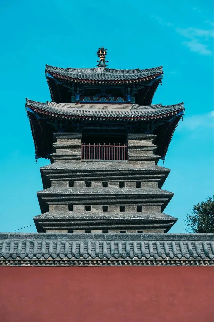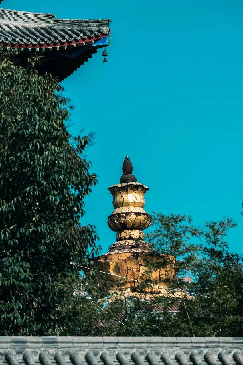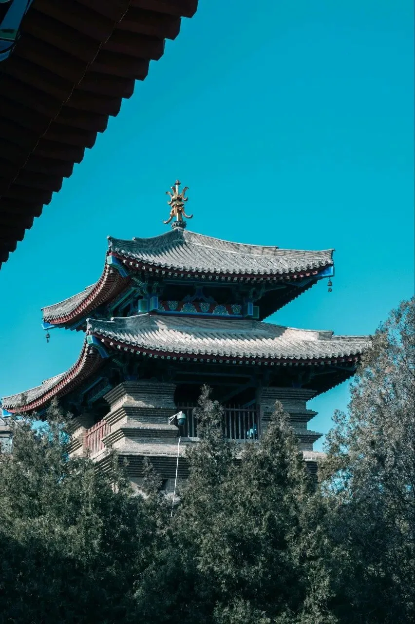 不同于少林寺的人声鼎沸,这里的青瓦石墙间,满是岁月沉淀的静谧。抬眼是澄澈到极致的青空,错落的飞檐翘角在蓝天映衬下,勾勒出最绝的中式美学轮廓。