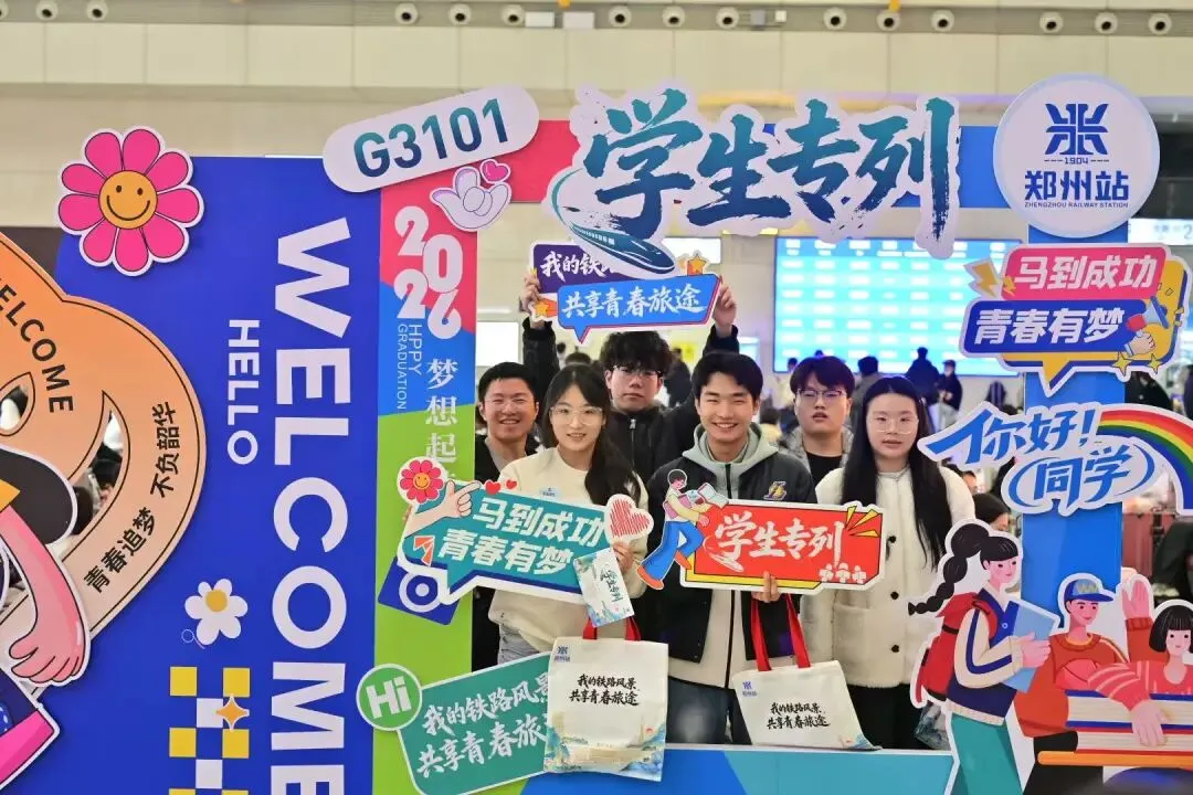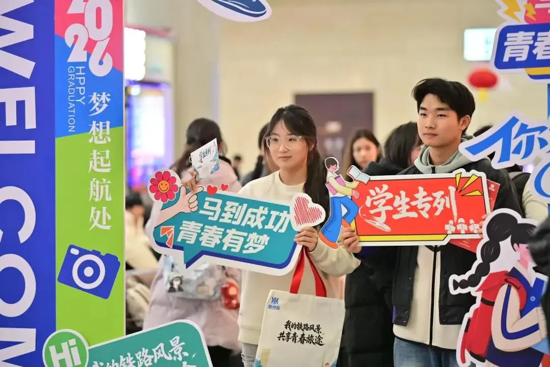 “为避免出行中行李错拿,车站还贴心定制‘我的铁路风景,共享青春旅途’手提袋和学生专列彩色行李卡,在专属候车区免费发放,让学生旅客出行无忧。”国铁集团郑州局郑州东站客运车间客运员赵婧霏说道。